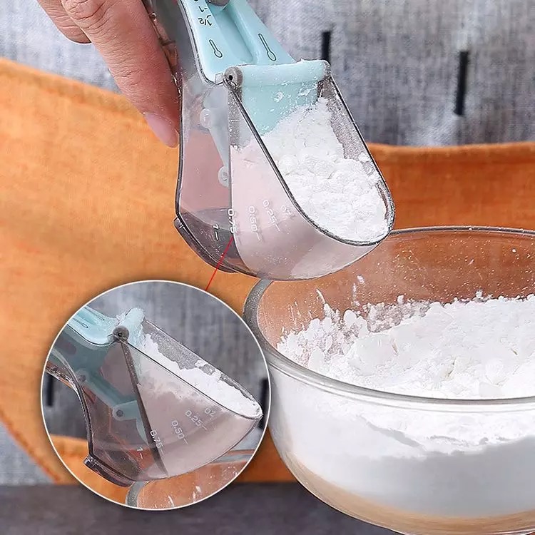 【الجمع بين 2 في 1 تصميم أفضل من ملاعق القياس التقليدية الأخرى ، يقيس المكونات السائلة والجافة. لا تحتاج إلى شراء أحجام مختلفة من ملاعق القياس لتتراكم في مطبخك.