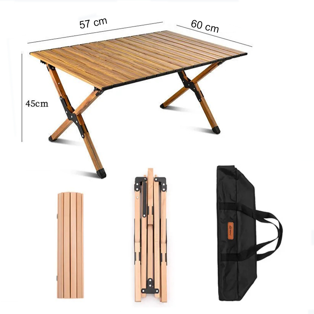طاولة نزهة قابلة للطي، قمة طاولة من الألمنيوم المتداول، مع إطار صلب بتصميم X قابل للطي، وحقيبة يد.