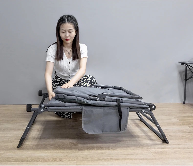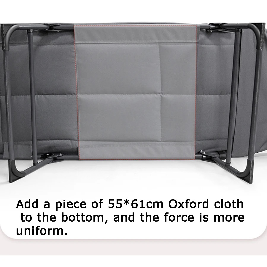 سطح السرير مصنوع من قماش رقصة التنين المقوى، وتم تعزيز تصميم طبقة عزل الصوت لتجنب الضوضاء الناجمة عن الأنابيب الفولاذية عند قلبها.