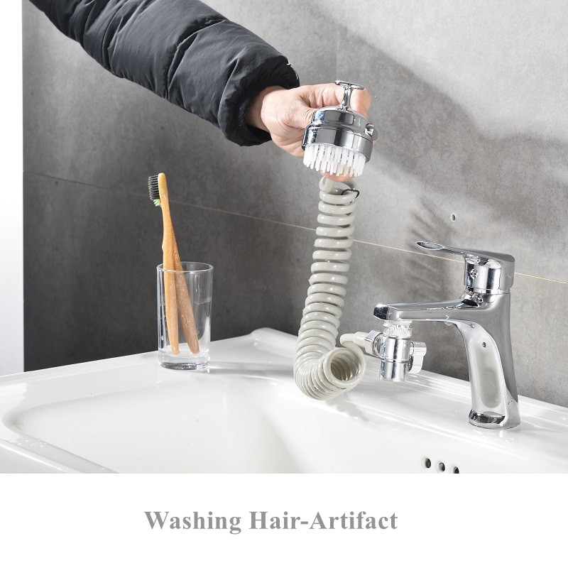 يتميز ملحق الدش الخاص بصنبور الحوض بفرش ناعمة وثابتة لطيفة على المناطق الحساسة من فروة الرأس بينما تنظف الشعر بشكل فعال. توفر فرشاة التدليك تجربة مهدئة. زر تشغيل/إيقاف بسيط يتحكم في تدفق المياه ويضمن التصميم القابل للإزالة سهولة التنظيف.