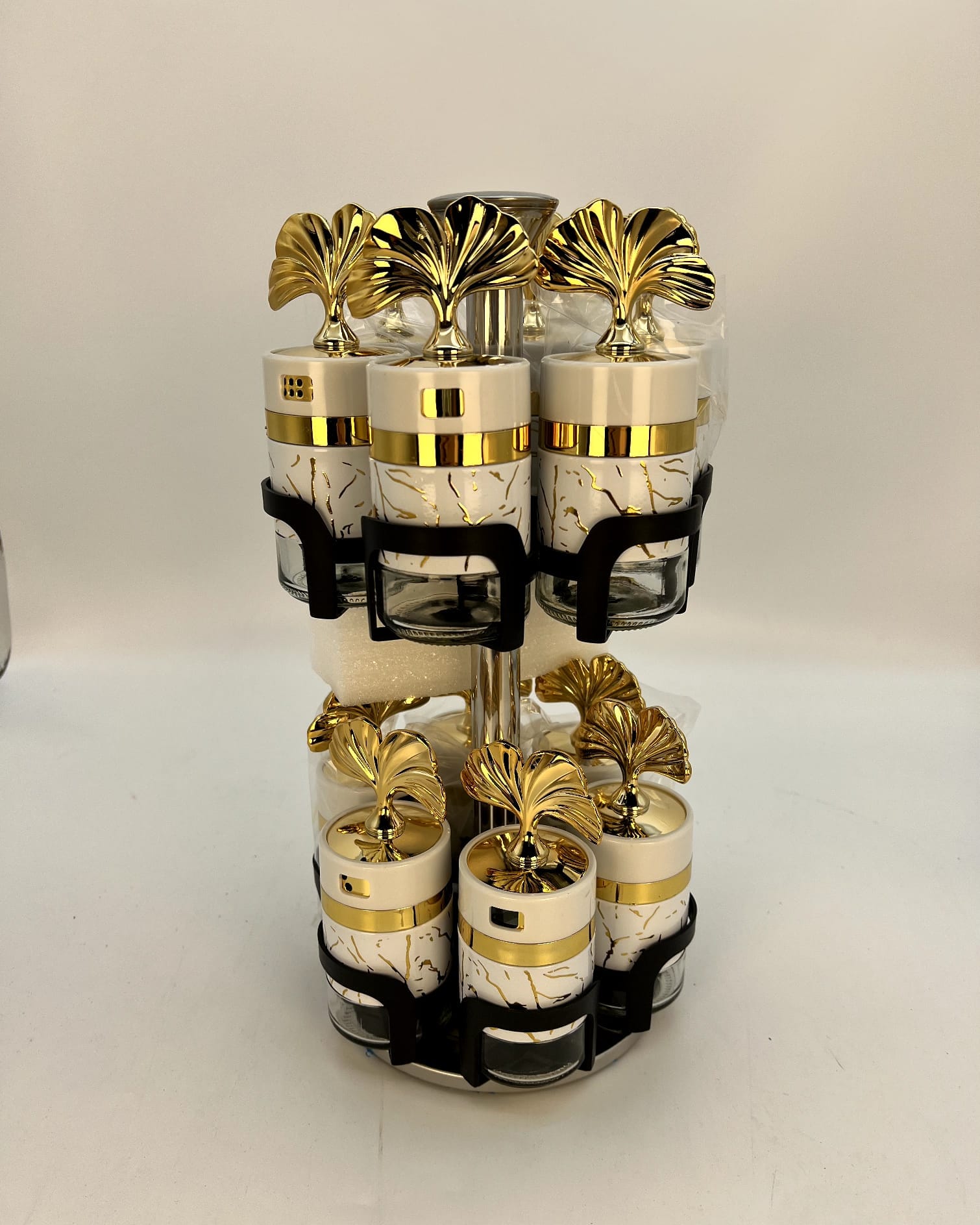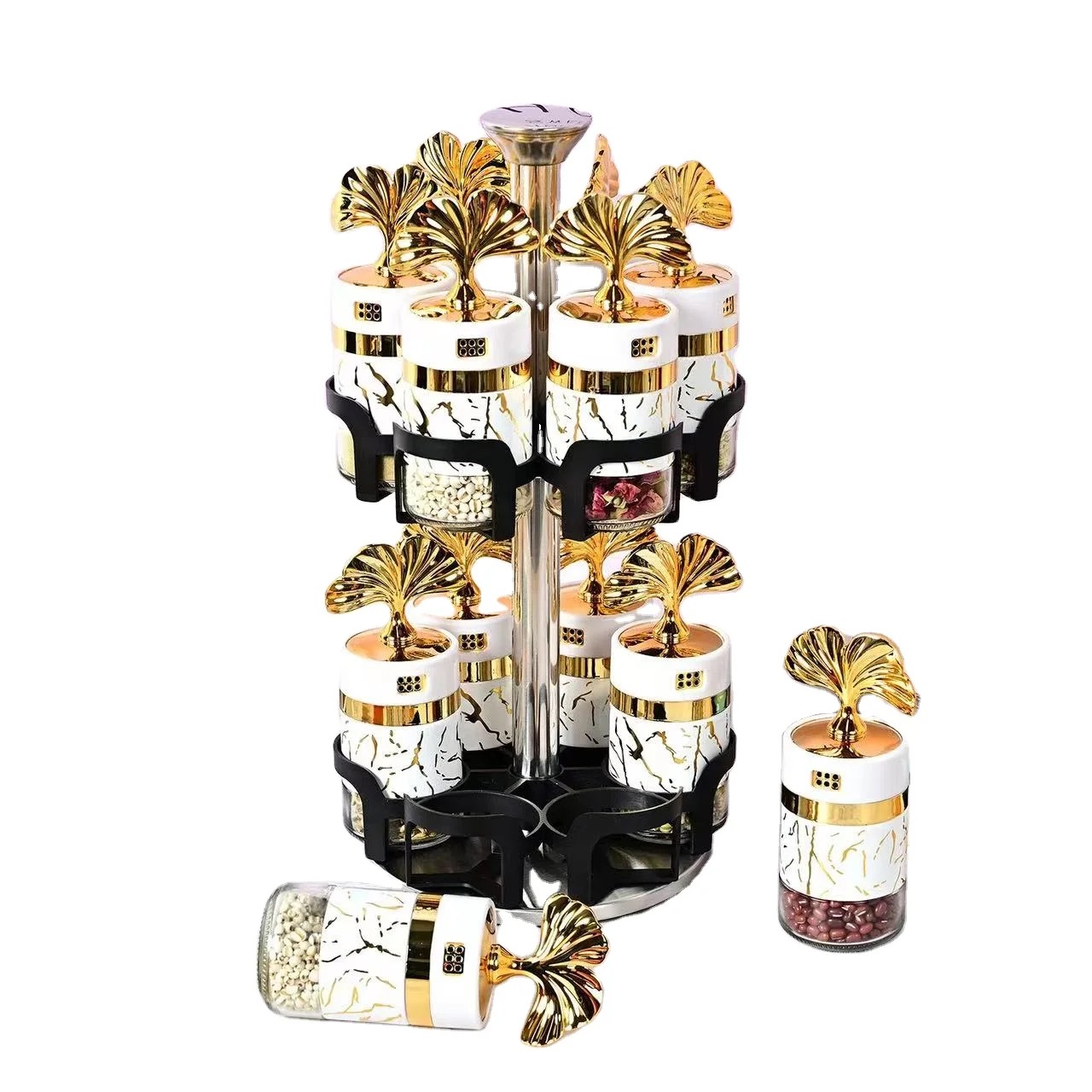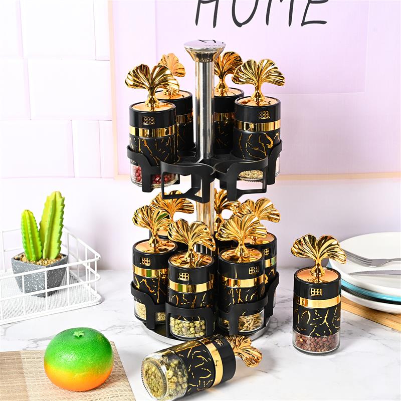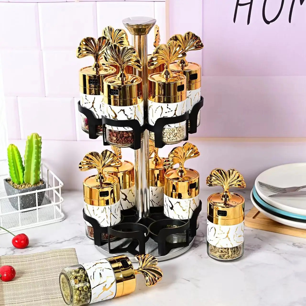 سهلة الملء وإعادة الاستخدام: تم تصميم الدوار لسهولة الاستخدام، مع برطمانات يسهل ملؤها وإعادة تعبئتها حسب الحاجة. تسمح لك البرطمانات الزجاجية الشفافة بالتعرف على المحتويات بسهولة، بينما تحافظ الأغطية الآمنة على التوابل طازجة ومحمية من الرطوبة والهواء. وهذا يجعله حلاً مناسبًا وعمليًا لأي مطبخ.