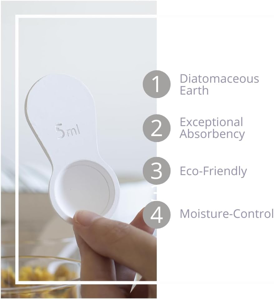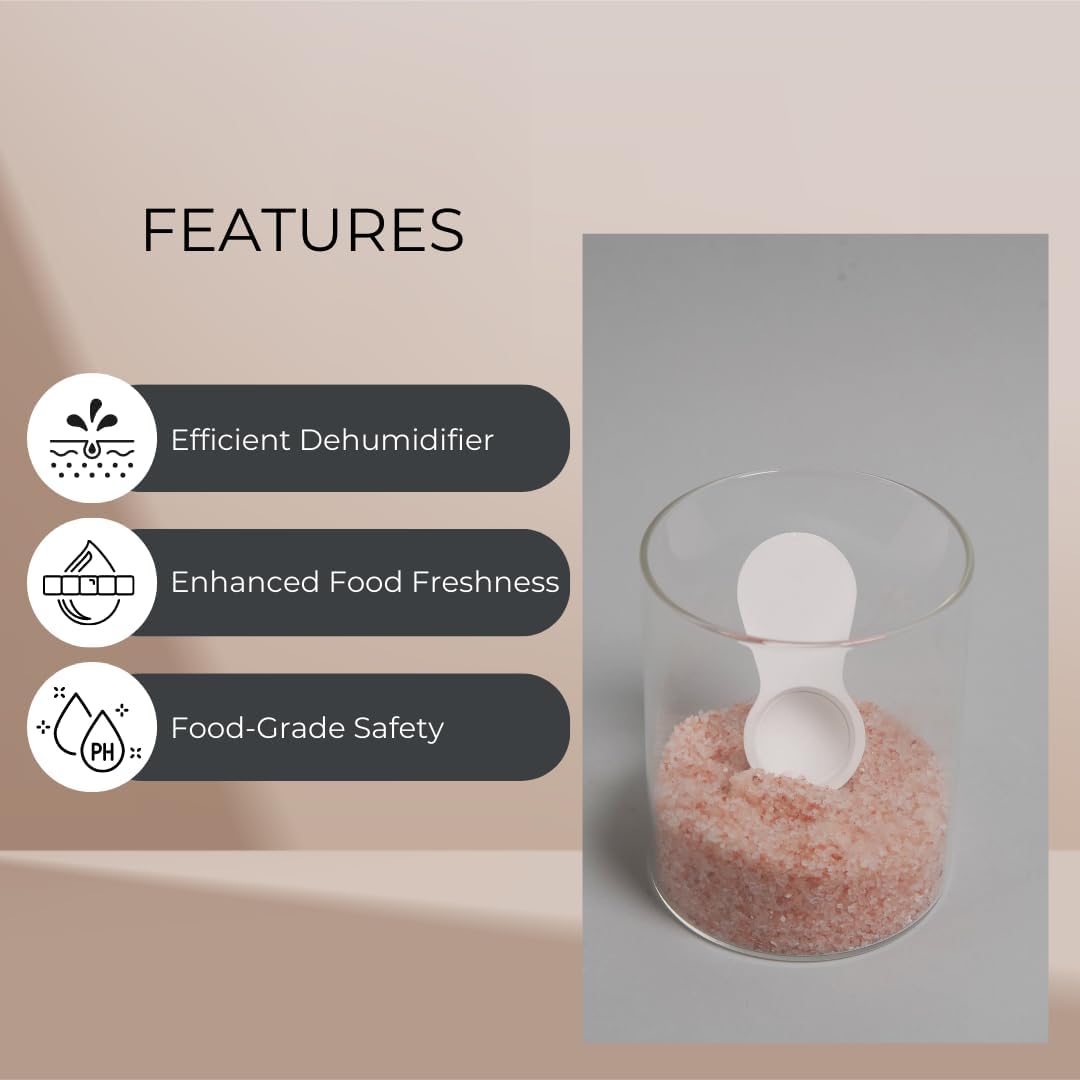 ممتص الرطوبة للتخزين: حافظ على مخزن المؤن والخزائن وحاويات التخزين الخاصة بك جافة وخالية من أضرار الرطوبة باستخدام الملعقة المجففة الخاصة بنا. تعمل خصائصه الماصة على تقليل الرطوبة الزائدة بشكل فعال وتساعد على إطالة العمر الافتراضي لبضائعك المخزنة.