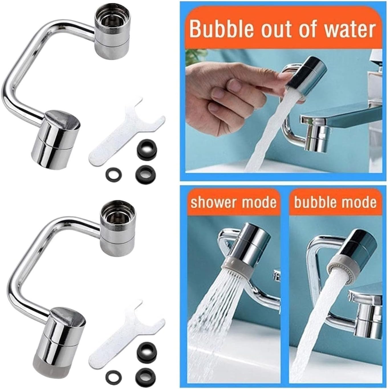 مجموعة واسعة من التطبيقات: صنبور في المطبخ، يسهل على الأطفال غسل اليدين والخضروات؛ بالنسبة لحوض الحمام، يمكنك غسل شعرك ووجهك بسهولة أكبر. وفي الوقت نفسه، يجعل محول الصنبور تنظيف الحوض أكثر ملاءمة.
