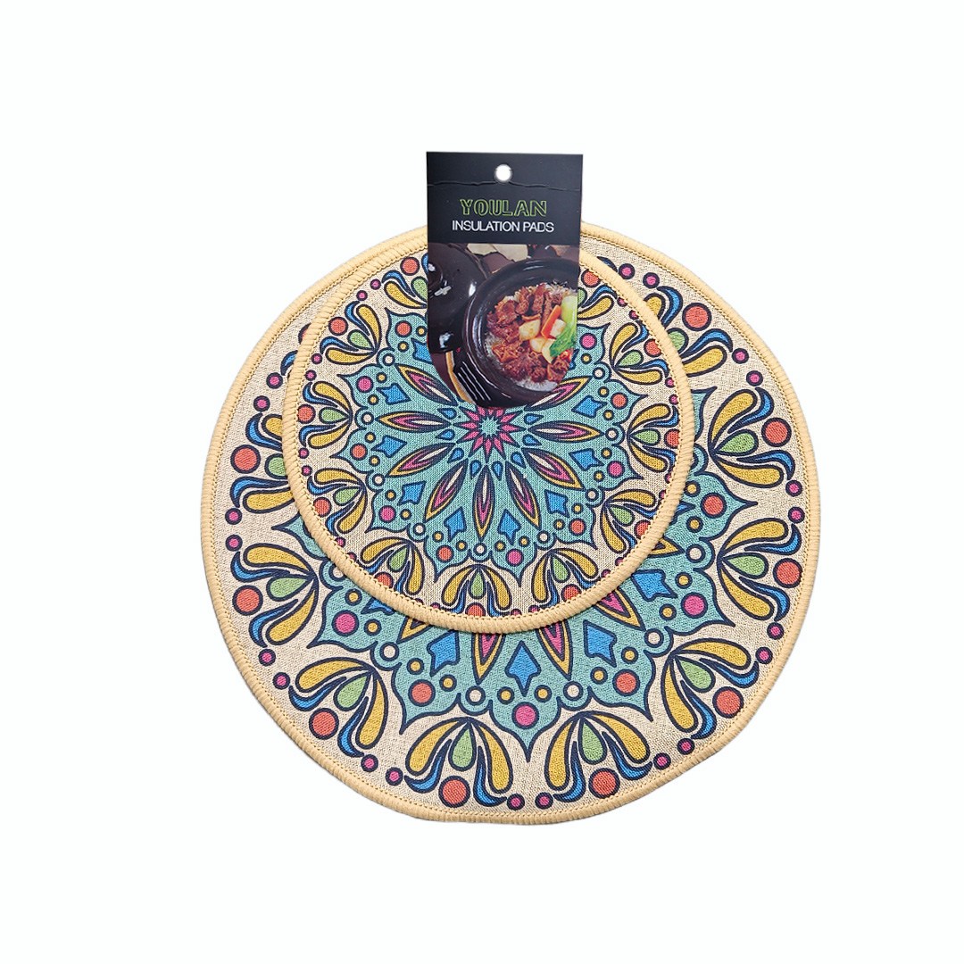 طقم بحجمين مزدوجين – يأتي مع قطعتين عازلتين دائريتين: واحدة صغيرة (20 × 20 سم) وأخرى كبيرة (30 × 30 سم)، مثاليتان للأواني الساخنة، الأطباق، أو إبريق الشاي بأحجام مختلفة.