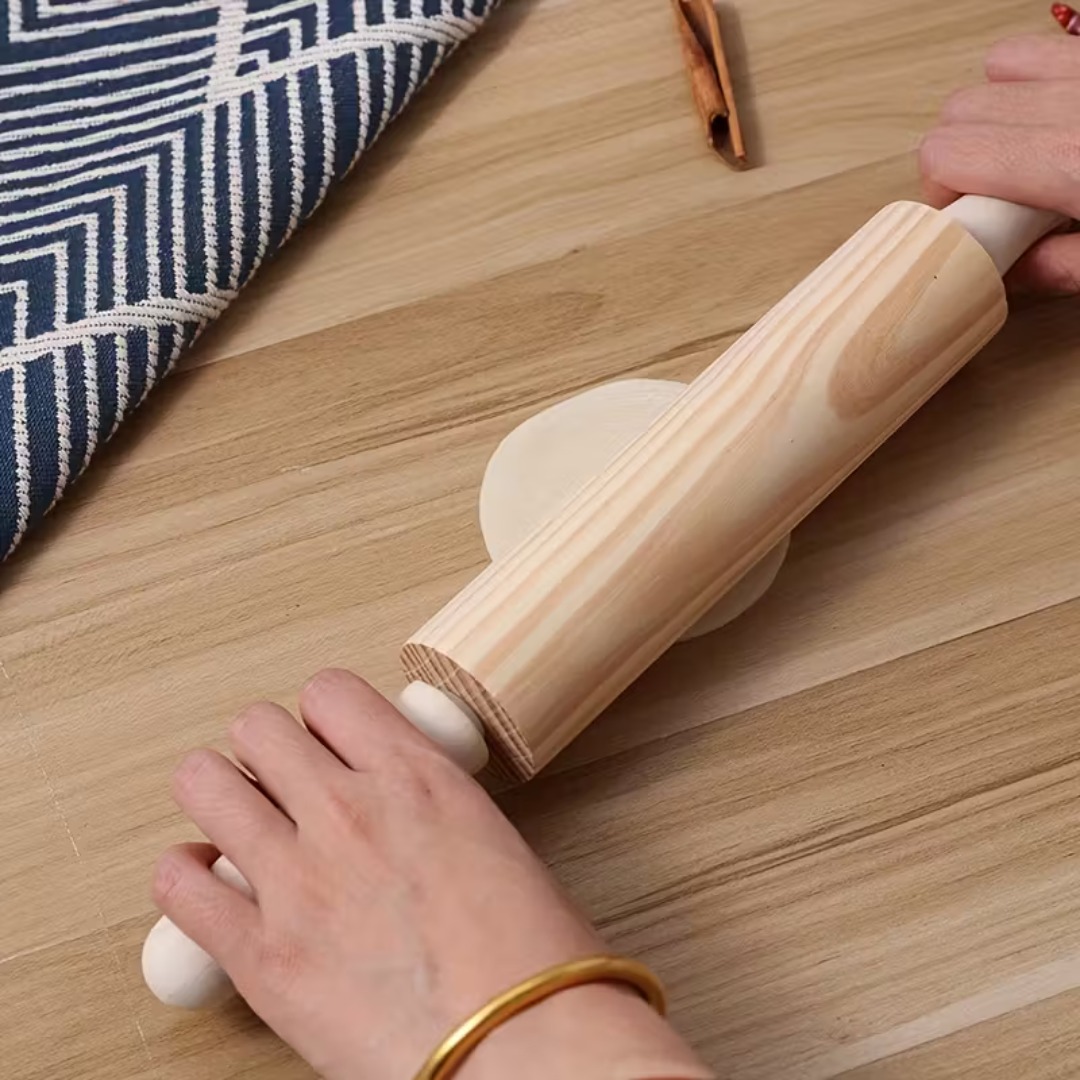 مصنوع من الخشب الطبيعي – مصنوع من خشب عالي الجودة وصديق للبيئة، يتميز بالمتانة والسطح الأملس لتسهيل الفرد والعجن.