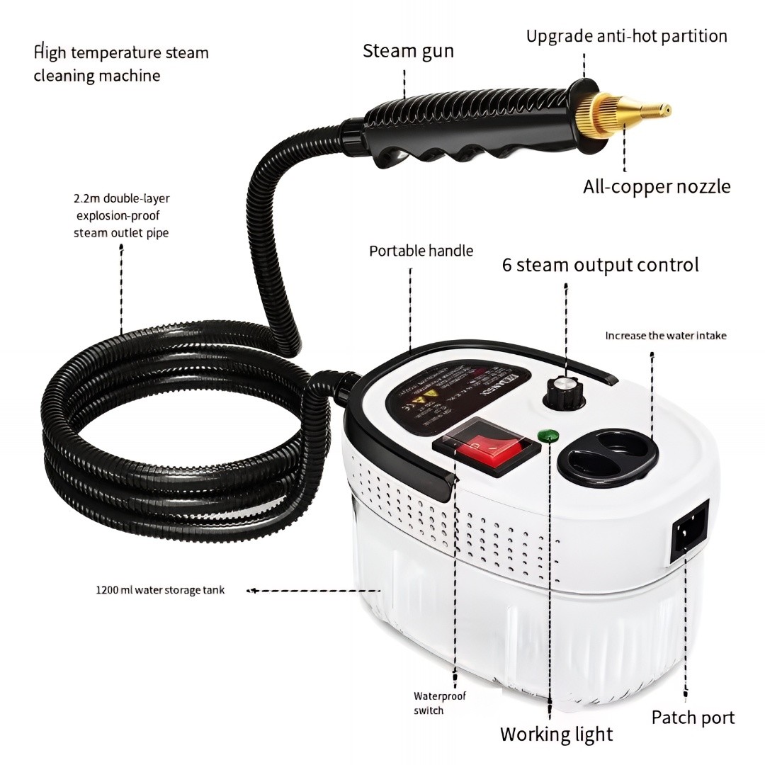 • أداء عالي القوة – مزود بنظام تسخين بقوة 2500 واط ينتج ضغط بخار قوي يبلغ 3.0 بار لتنظيف عميق وفعّال للدهون والبقع والأوساخ.