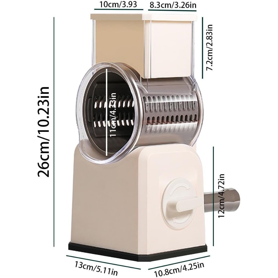 مبشرة دوّارة متعددة الوظائف: مزودة بثلاث أسطوانات من الستانلس ستيل قابلة للتبديل للتقطيع والبشر والطحن بسهولة للخضروات أو الجبن أو المكسرات.