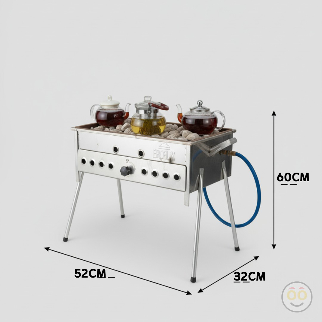 تسخين بالغاز: يُوصل بخرطوم غاز لتوفير حرارة مستمرة ومتحكّم بها، مما يجعله مثاليًا للرحلات والحدائق.