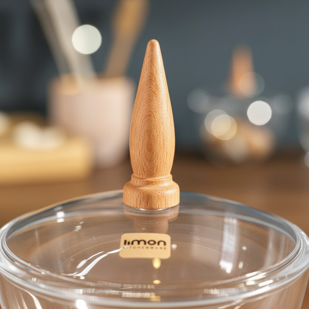 غطاء بمقبض خشبي آمن: مزوّد بمقبض خشبي طبيعي يسهل رفعه ويحافظ على المحتوى محمياً.