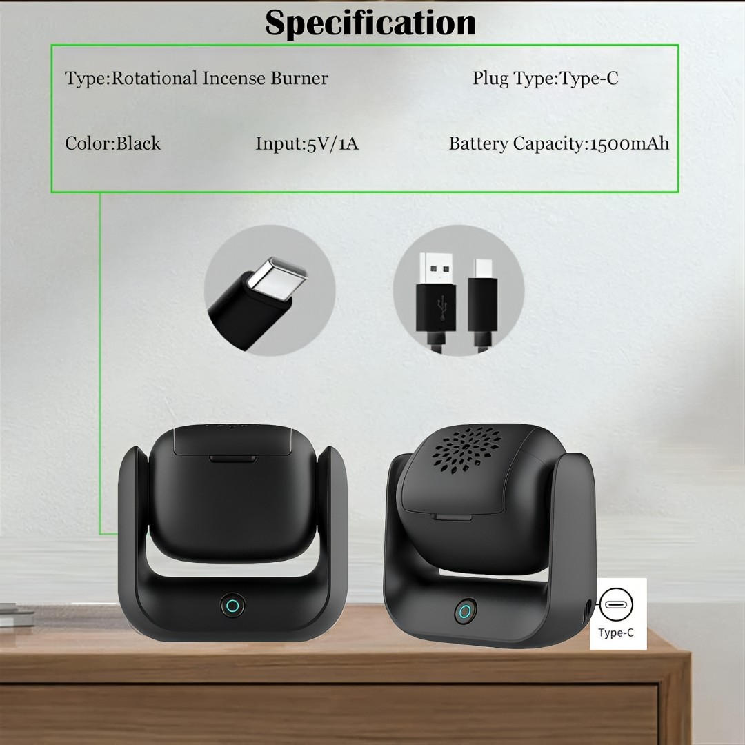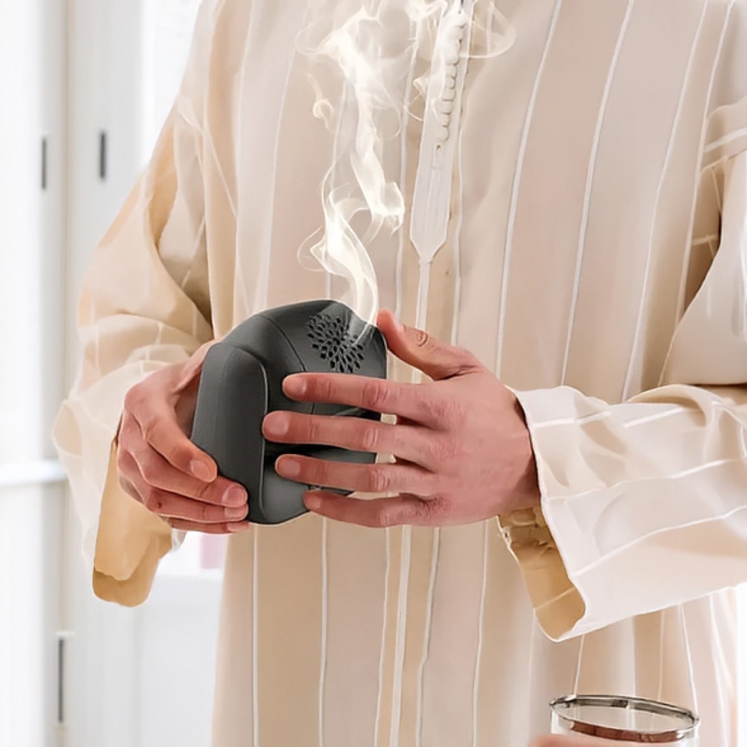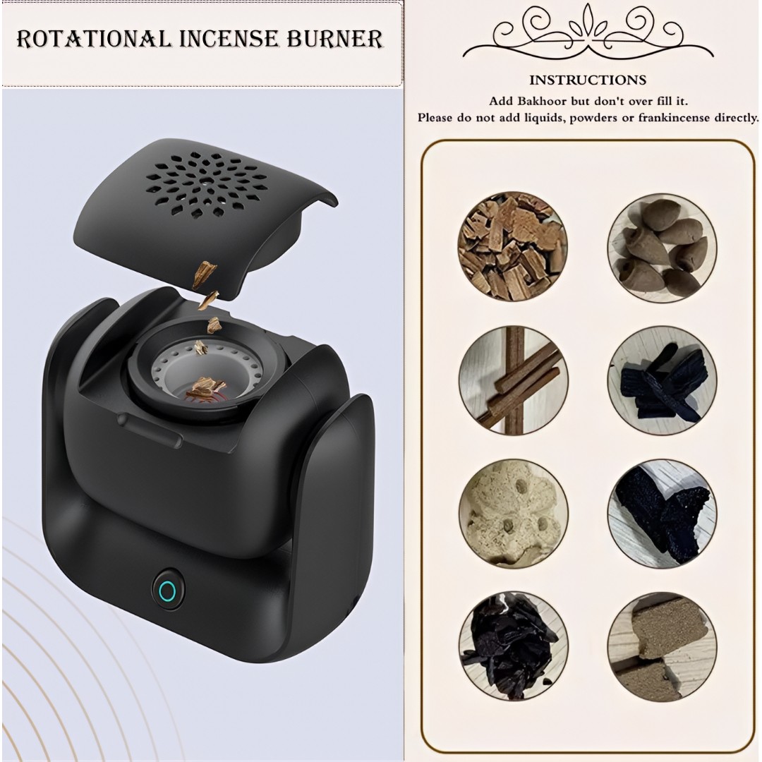 مبخرة بخور دوّارة عصرية: مبخرة كهربائية أنيقة مزودة بمخرج دخان دوّار يساعد على نشر رائحة البخور بلطف، مما يخلق أجواءً مريحة وأنيقة في المنازل أو المكاتب أو المجالس.