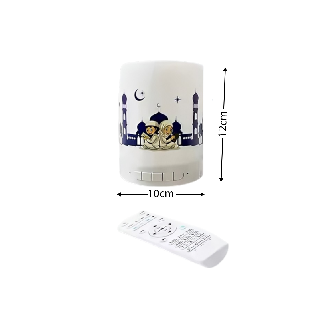 مكبر صوت قرآن متعدد الوظائف: جهاز محمول للأطفال المسلمين يعمل كمكبر صوت بلوتوث، ومشغل لتلاوة القرآن، ومصباح ليلي، ومشغل موسيقى لاسلكي في جهاز واحد مدمج.