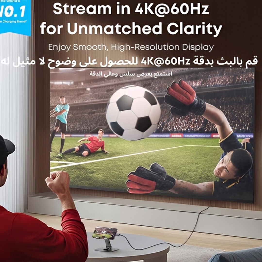 جودة عرض فائقة الدقة: يدعم دقة 4K بمعدل 60 هرتز، مما يوفر صورة واضحة للغاية للأفلام، العروض التقديمية، وتوسيع الشاشة بأداء سلس.