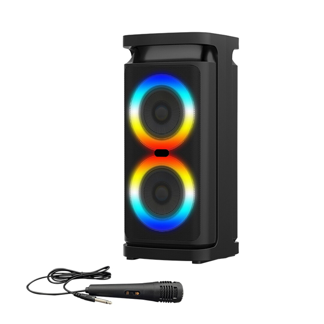 صوت قوي عالي الأداء: مزودة بسماعتين لتقديم صوت قوي وواضح وغني، مثالي للاستخدام الداخلي والخارجي والحفلات والتجمعات.
