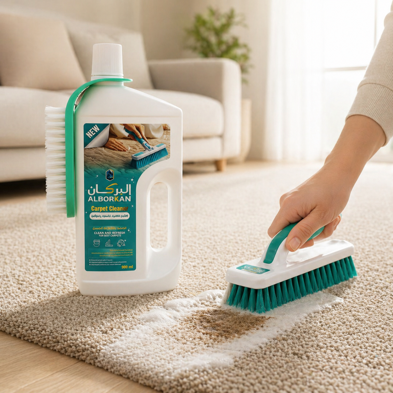 تنظيف قوي للسجاد: تركيبة متطورة تزيل الأوساخ العميقة والبقع والترسبات من السجاد وتتركه نظيفاً ومنتعشاً.
