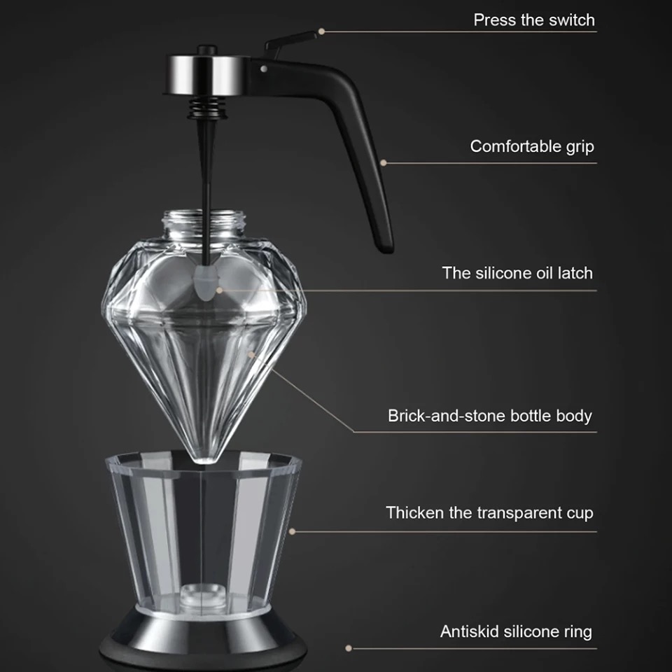 5. Gently press the switch to pour the oil easily. The silicone oil latches cooperate with the button switch. Can freely control the amount of oil and prevent oil leakage.
