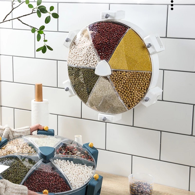 6-Compartments Large Capacity: The 6 internal partitions can be rotated 360 ° at will. The transparent body can see the canned food, And the large capacity can hold all kinds of dry food.