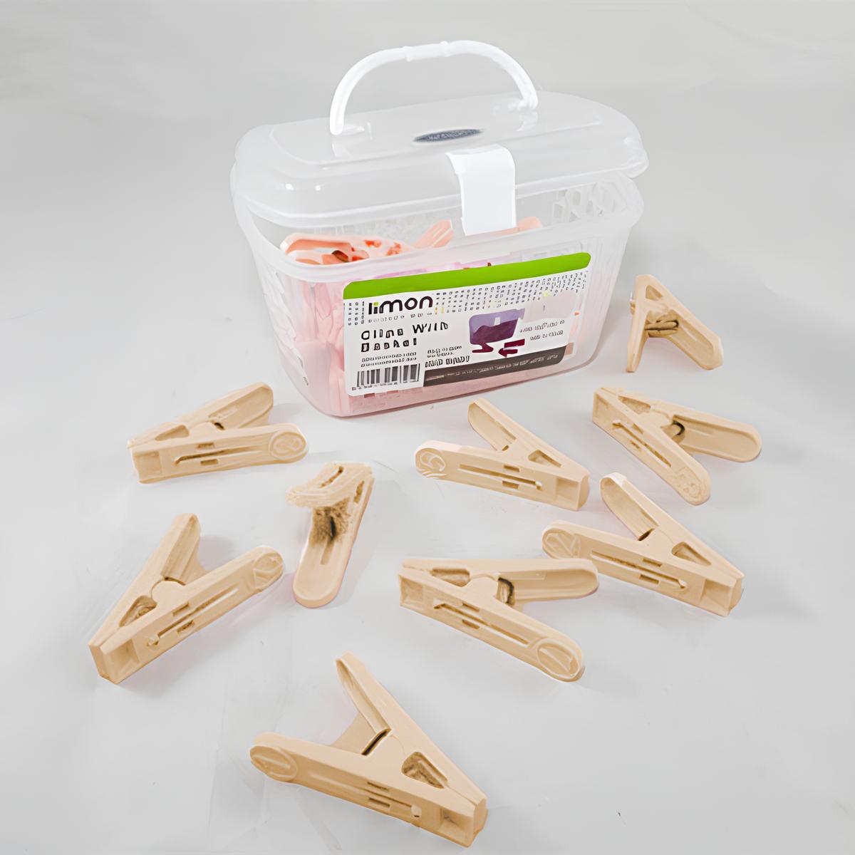 clothespins with a lemon basket can be used to hold clothes on the strap.