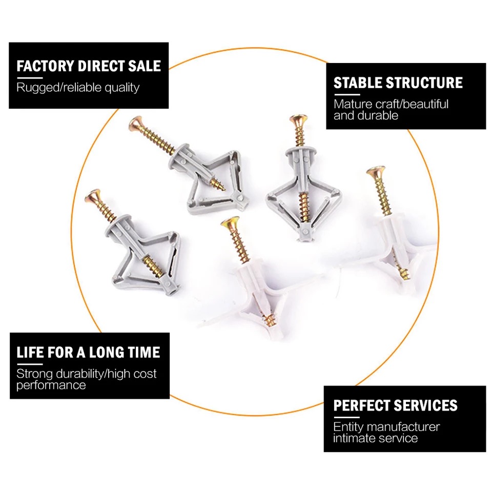 The plastic material anchors are very durable and not easy to be broken, drywall self-drilling screws kit is made of metal, which features high