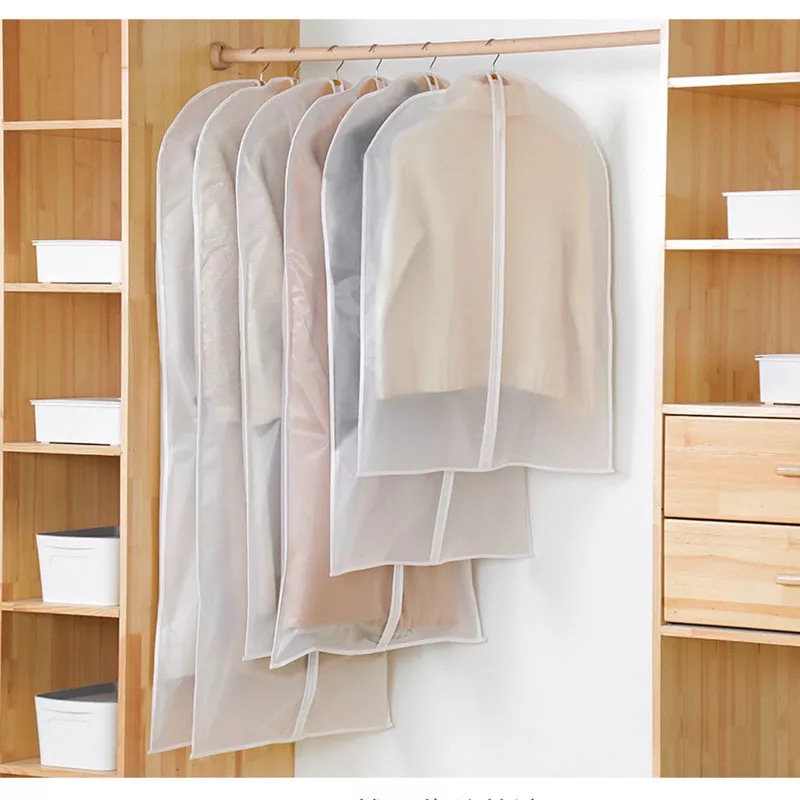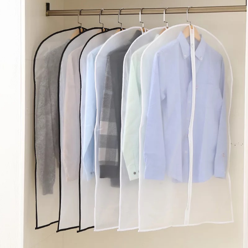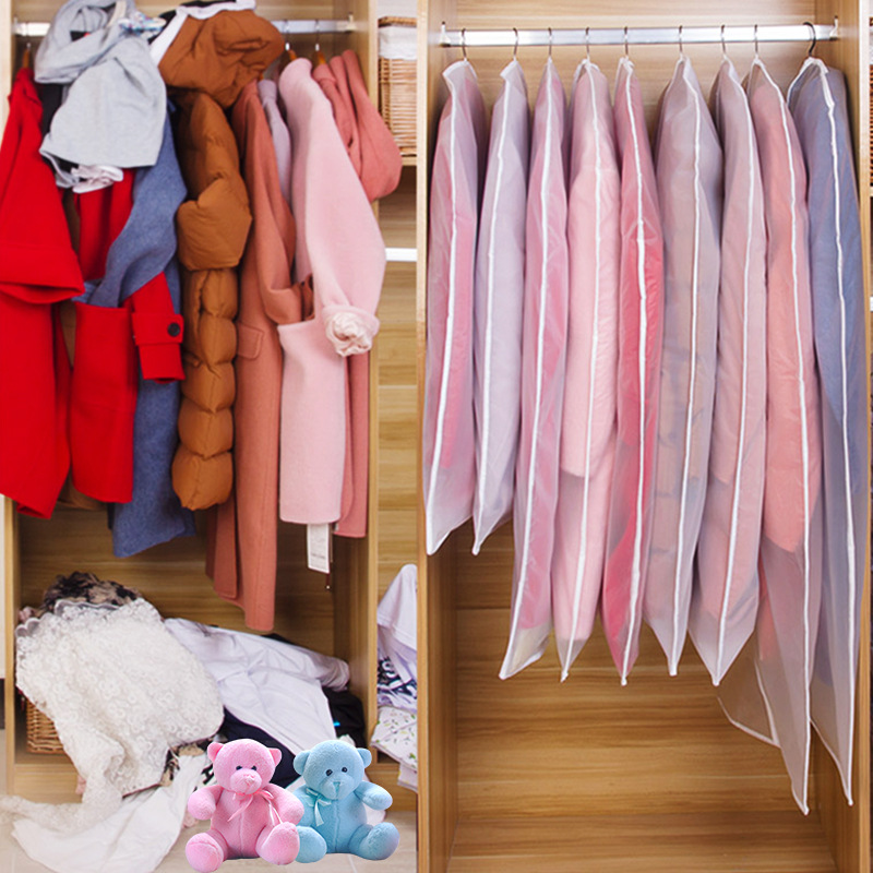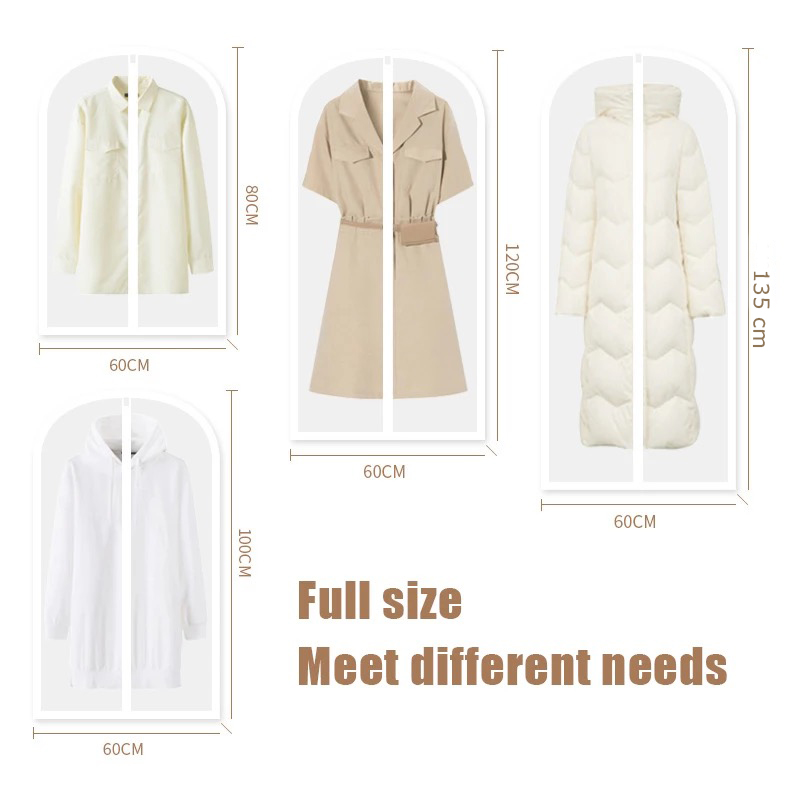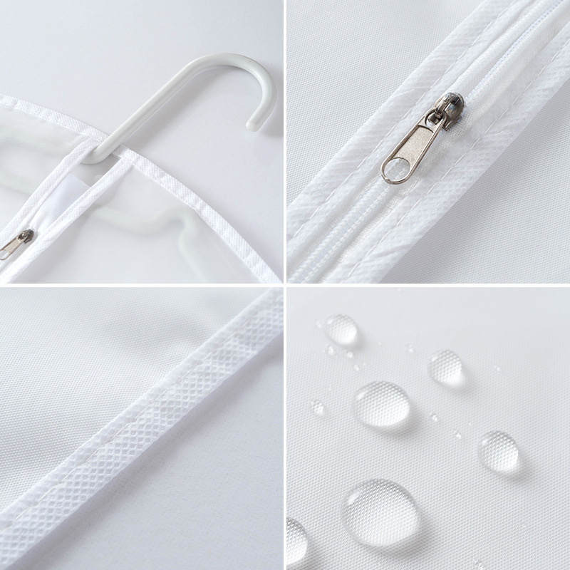 1.EVA suit cover, using waterproof fabric, moisture-proof, mildew-proof and insect-proof, no need to worry about the clothes being damp and moldy, and the dirt can be washed; 2. High gram weight and high density, dustproof effect is better than general non-woven fabric. 3. The EVA material itself is waterproof and is a kind of plastic, so the dust cover made can be cleaned and wiped, and the durability is better. After use, the wardrobe is refreshed, space is saved, and the clothes are hung vertically and stylishly.