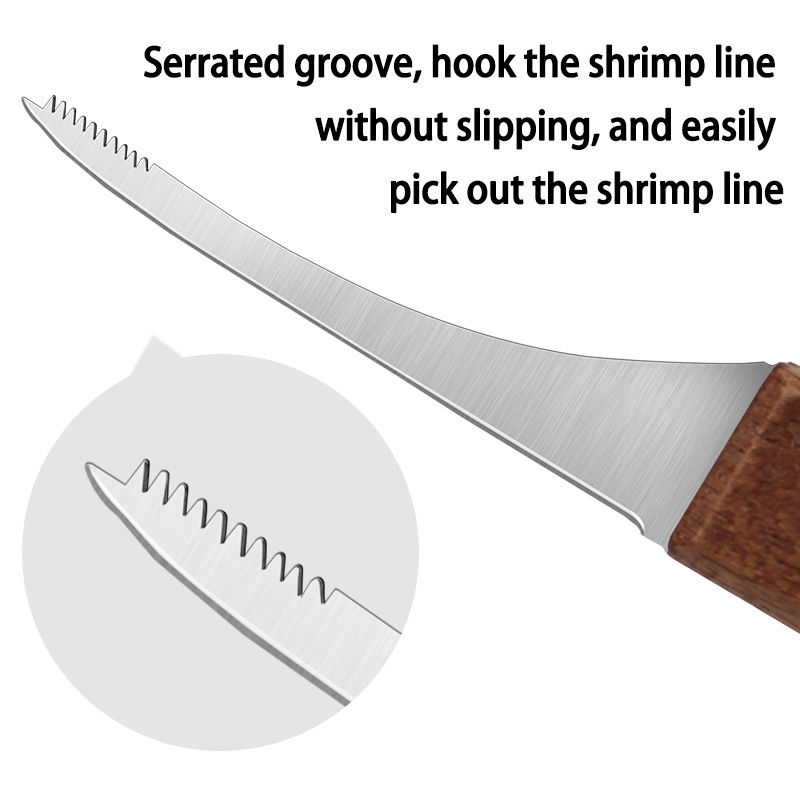 1. The knife body is designed to simulate the shrimp body, and the shrimp gut is cleaned along the back of the shrimp, saving worry and effort.