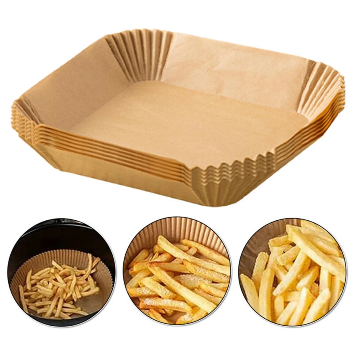 Reliable and safe: these disposable air fryer liners baskets are made of Raw wood pulp, which is waterproof and grease-proof material, and with nice heat resistant