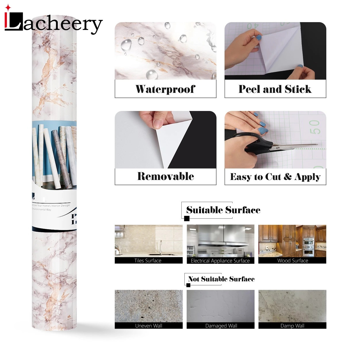Easy Installation: Installation guide packed with the wallpaper roll, it is easy to put on when tools are collected (blades, tape, etc.). There are grids and dimensions on the back. Smooth and flat surface helps the wallpaper to adhere well.