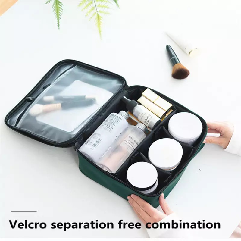 Provides ample space to fit in women's cosmetics, makeup essentials such as makeup brush, lipstick, eye shadow, skin care Products, shampoo, creams, nail art products, jewelry, hygiene, hairbrushes, travel accessories.