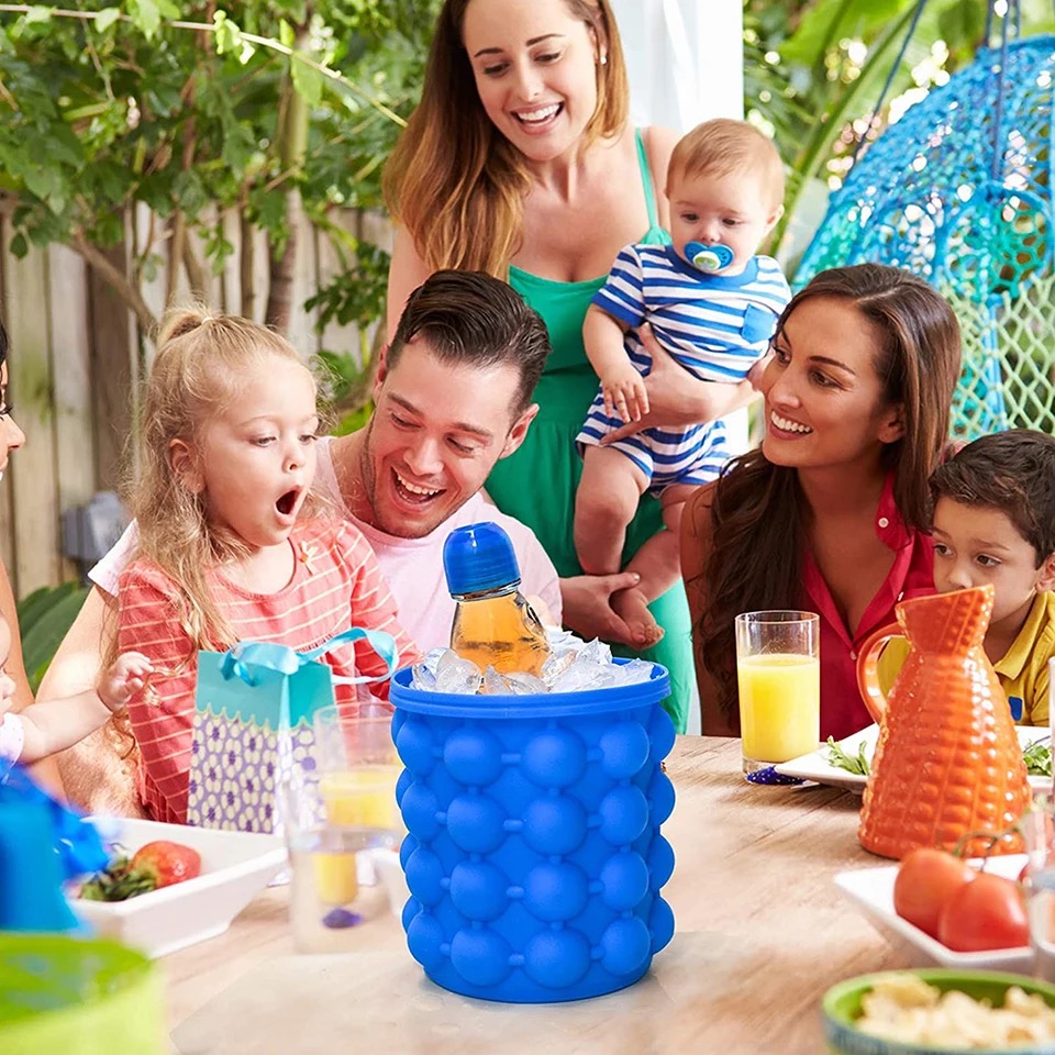HIGH QUALITY---Our Large Silicone 2 in 1 Ice Bucket & Ice Mold is made of high-quality food grade silicon, TRP and PP. It ensures health and durability. It's 100% safe.