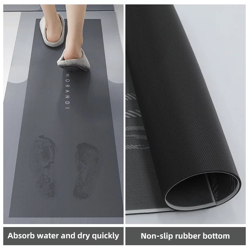 hand wash: Pvc latex non slip bottom side surface, helps keep it stay in place for a long time and prevents the floor from slipping when you take off it.