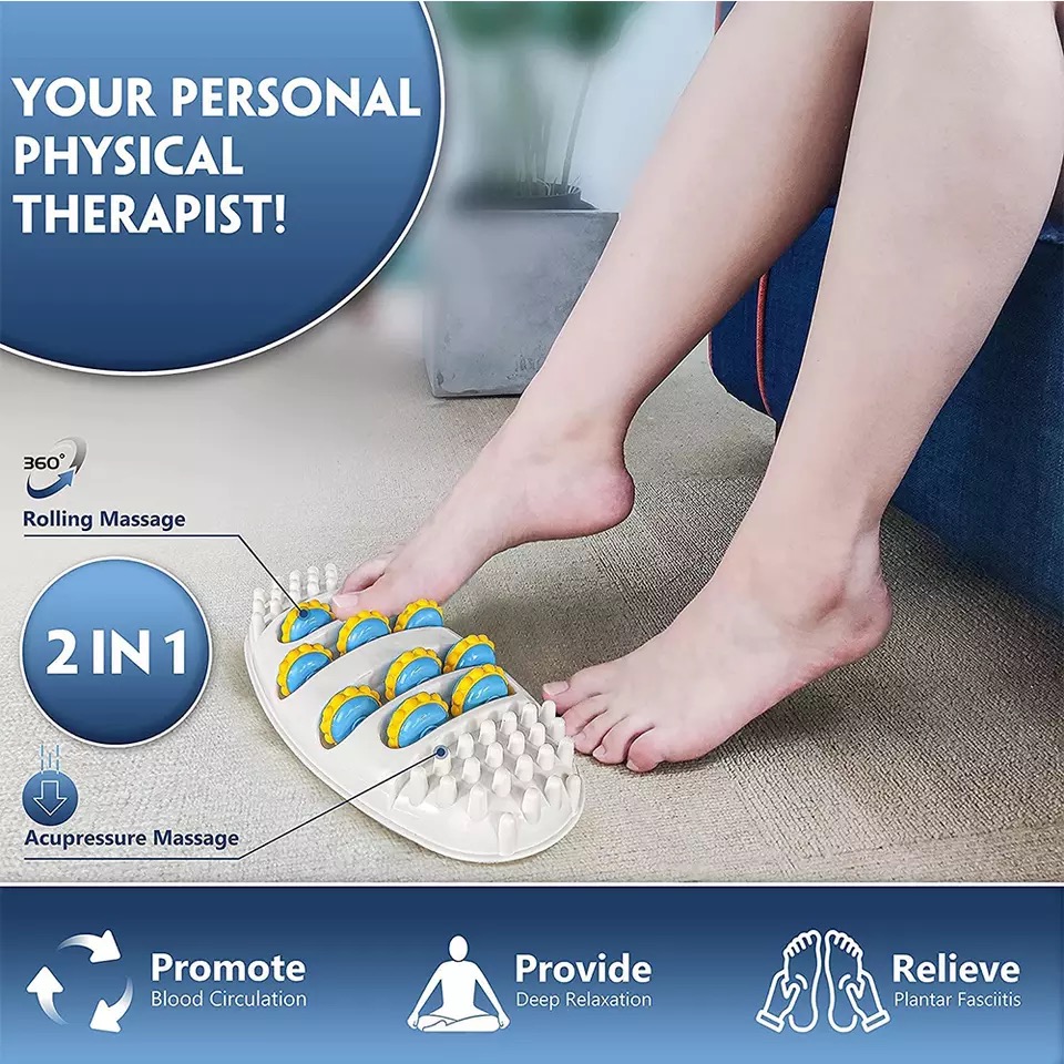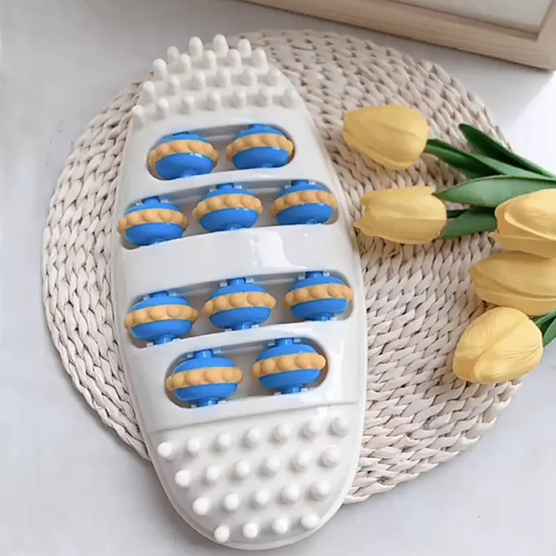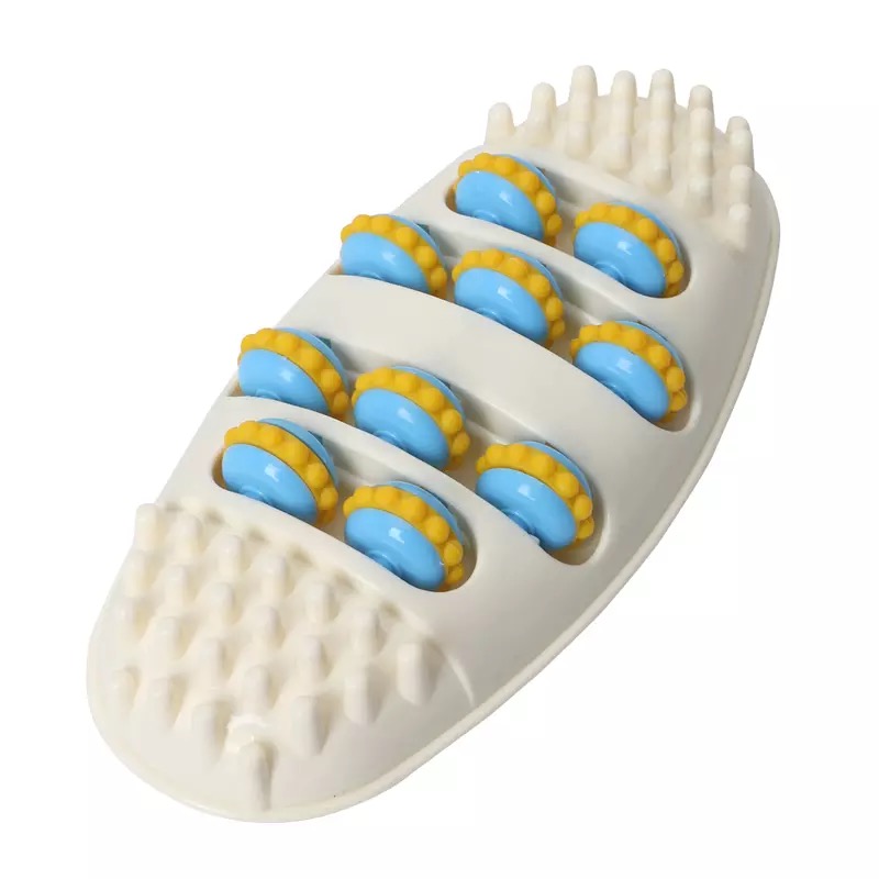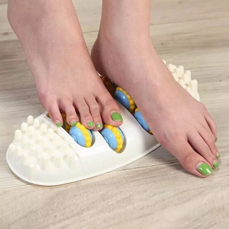 The latest designed plastic roller foot massager, combined with the human foot, makes it difficult to massage the soles of the feet completely. Just step on the five wheels of different sizes to effectively massage the lumps on the feet.