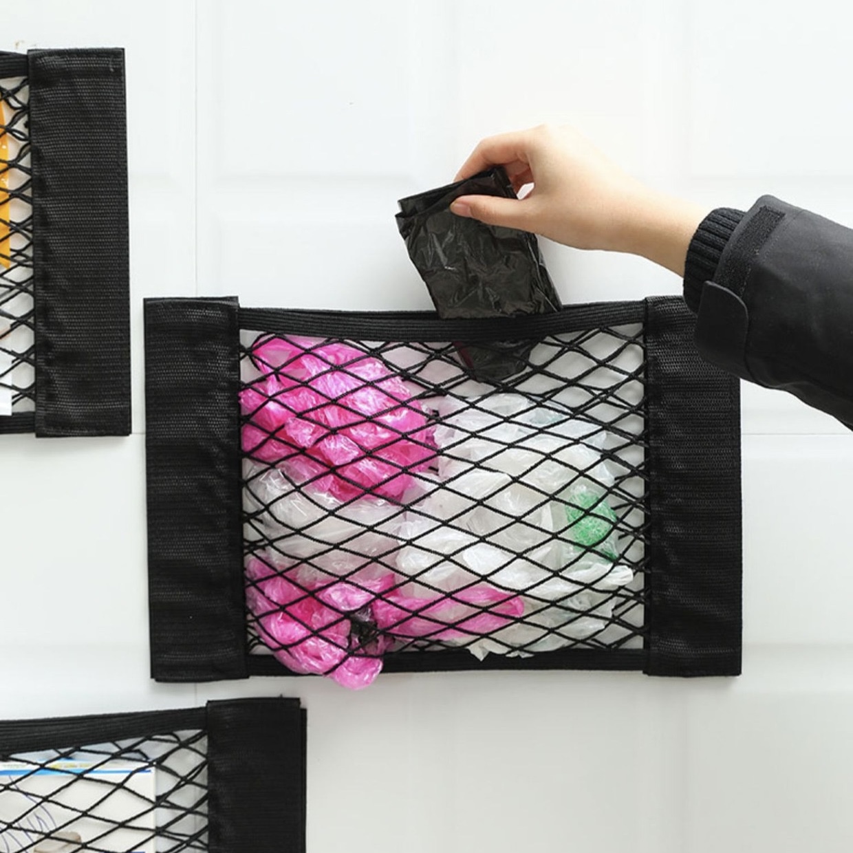 CAR BOOT NET POCKET: With this mesh bag, you can organize and sort things in the car such as food, bottles, cleaning sprays, cleaning cloths, etc., making your car cleaner and tidier.