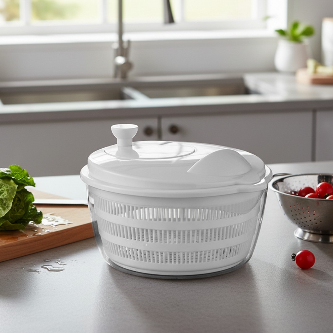 EASY TO USE: The large salad spinner product parts are easy to remove, easy to clean and store, swivel in any direction, empty, rinse and spin dry.