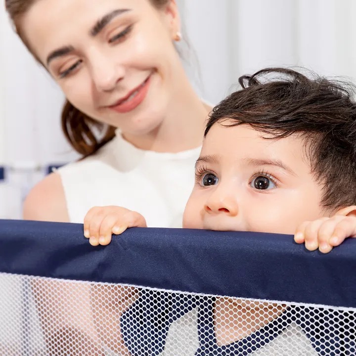 3、Breathable mesh panel with zipper: The side adopts a breathable mesh design, which allows parents to observe the baby's movements and interact with him at any time. It brings a sense of security to your baby. It also has a pull loop design that can help your baby stand up. Learn to walk. External zipper opening design effectively prevents babies from running outdoors and accidentally falling.