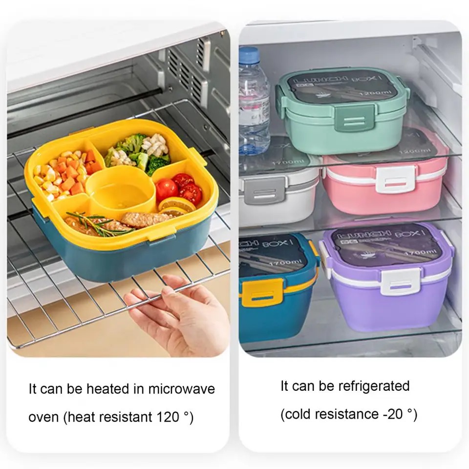 The lunch box has a non-stick and smooth surface and is easy to clean. Leak-proof cover and buckle design ensures a strong seal.