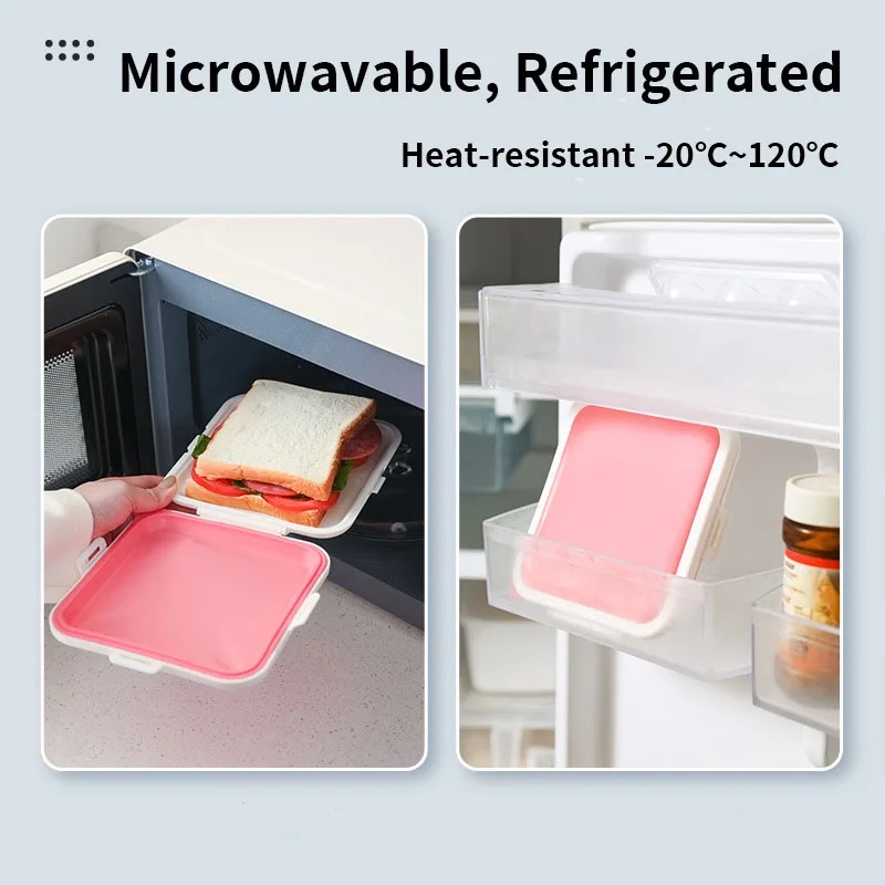 Material: the square sandwich container is made of plastic and silicone with locking clip design to create a perfect leak-proof seal for safe storage and transport