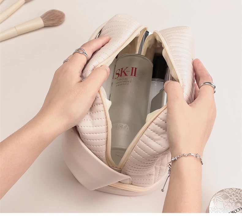 This cosmetic bag is made of waterproof PU leather and polyester lining to your cosmetics from the effects of humidity. In addition, the cosmetic bag is matched with a stylish and sturdy metal double zipper, smooth and comfortable, durable and wear.