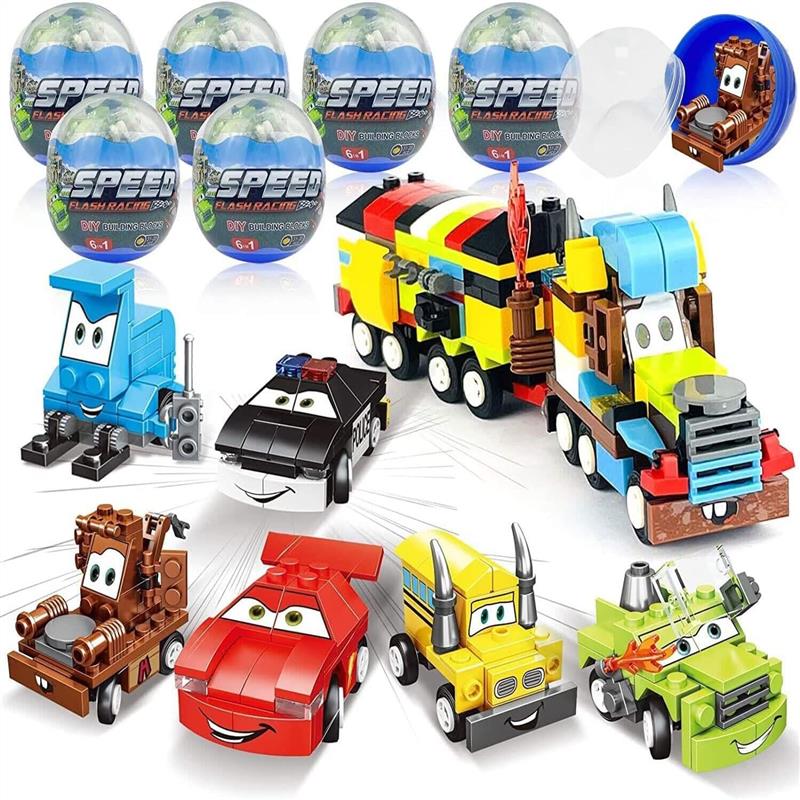 Safe & Easy to Assemble: The car building blocks toys are made of high-quality environmental ABS plastic material. This Basket Stuffer surprise Eggs Toy provide hours of fun play for children. Get them excited with a surprise in an egg. Keep kids entertained in blocks world, enjoy putting building blocks together.