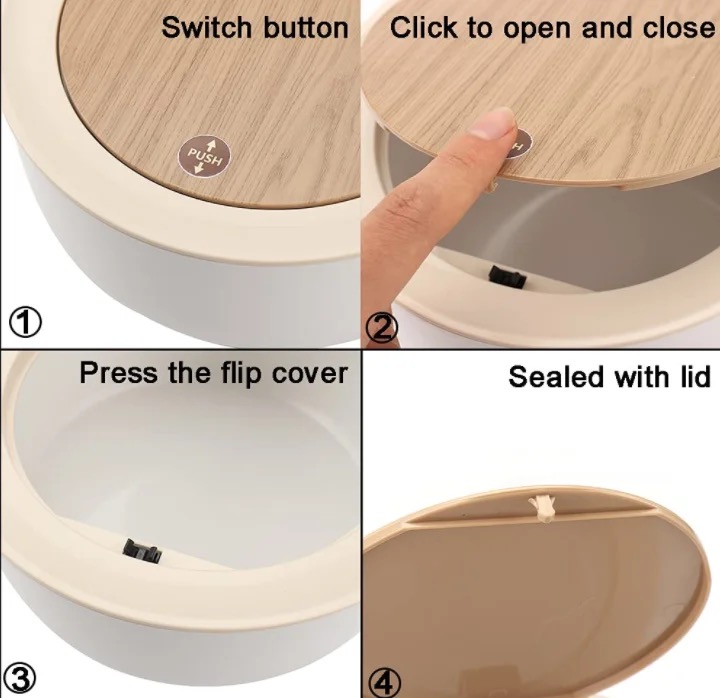 【Press Type Lid】Just press to open the lid. The design of the lid effectively reduces the odor. At the same time, keep the desktop clean and become a beautiful decoration on the desktop.