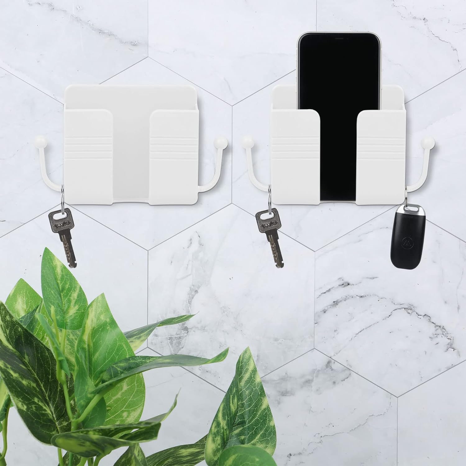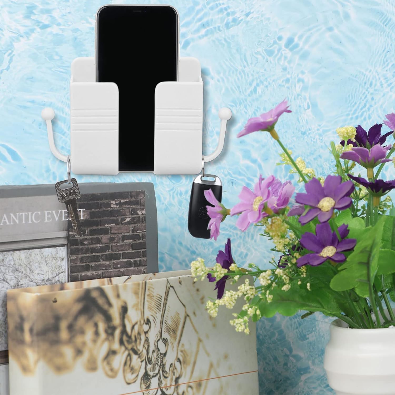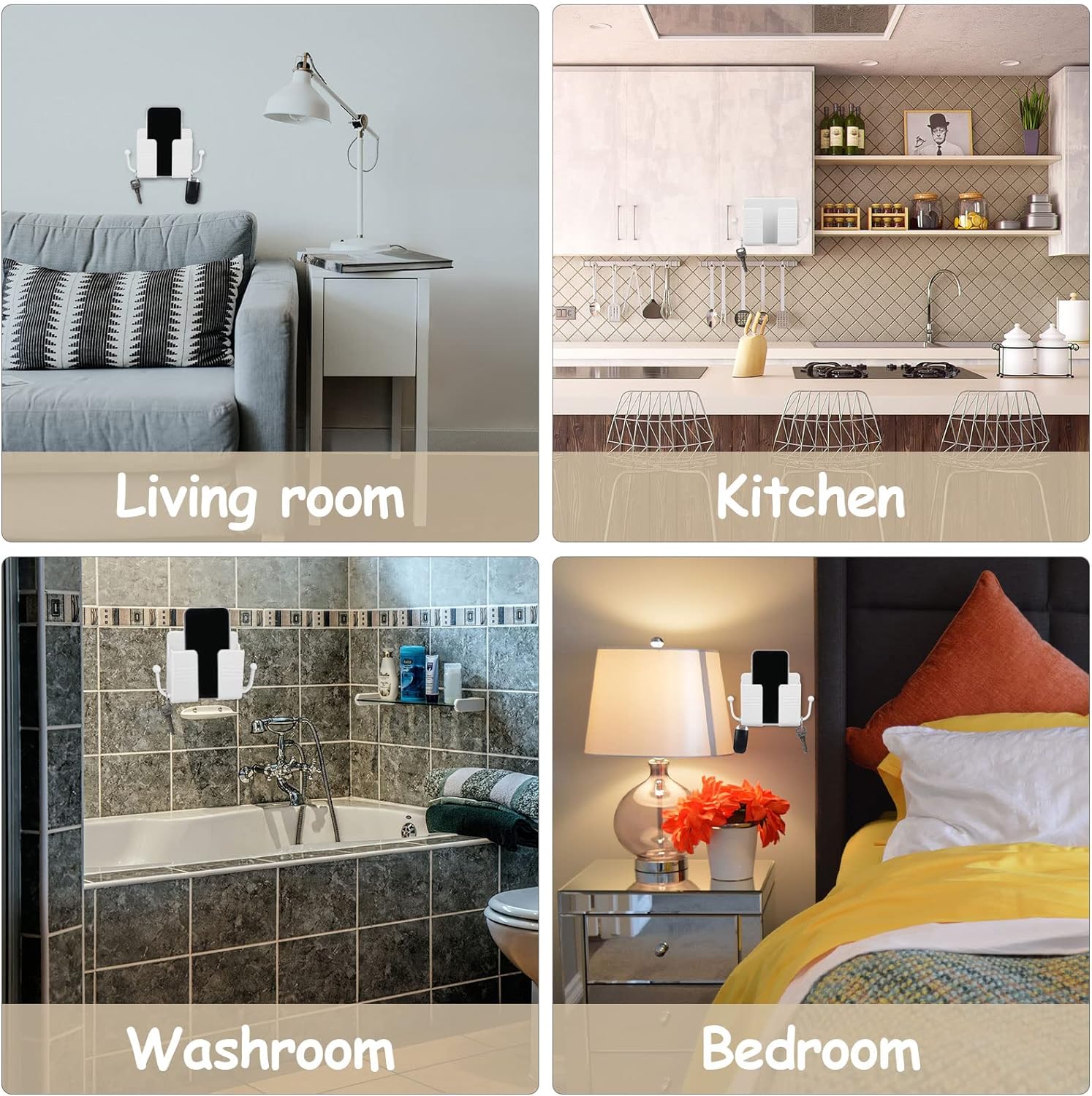Value Package: You could get 2 pieces white wall phone holders with hooks on both sides, the cute shaped, suitable for storage boxes and home decorations. You can use these wall-mounted phone holders in bedrooms, bathrooms, kitchens, and offices.