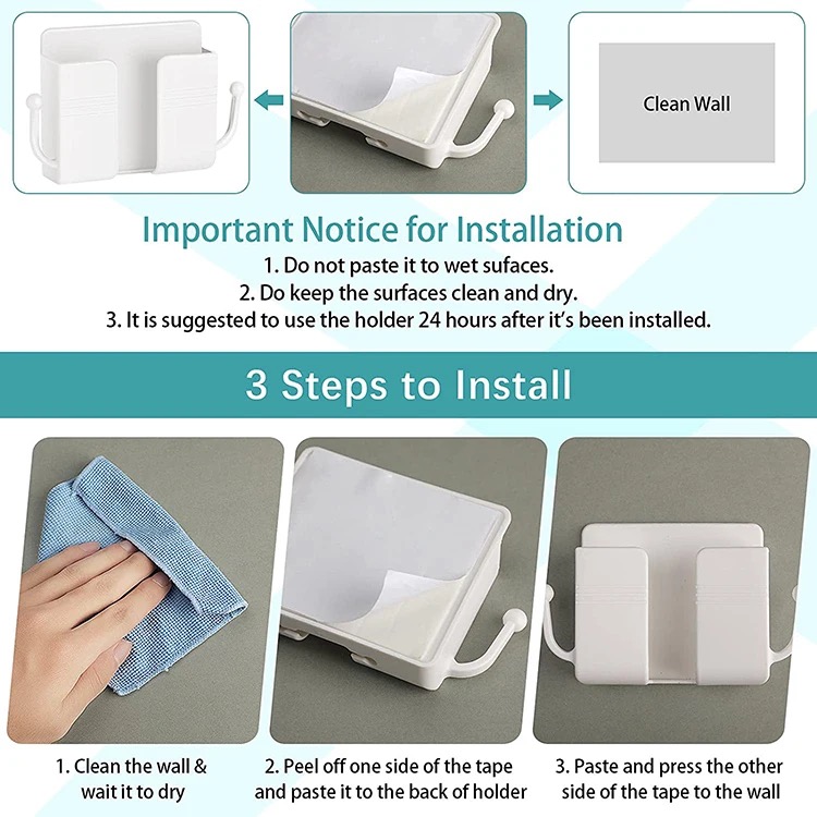 Easy to Use: The charging mobile phone holder has suitable size and cute shape, wall-mounted phone holder has double-sided tape simply tear off the film and stick the wall-mounted phone holder where you need it. You can install it on the bedside or on the wall for easy access to items at hand.