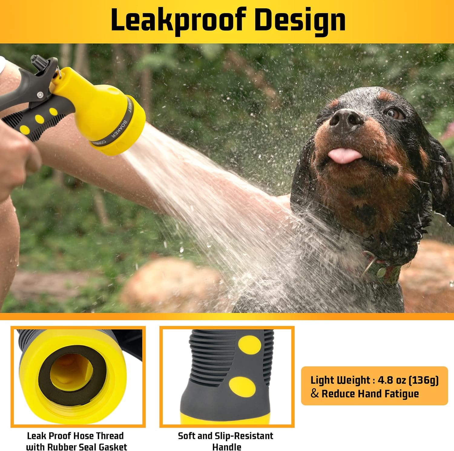 5. Suitable for most garden hoses. Perfect for Watering Your Garden, Lawn, Grass, and Flower Beds. Great for Washing Your Car, Showering Dogs and Pets, Cleaning Your Floor/Window.