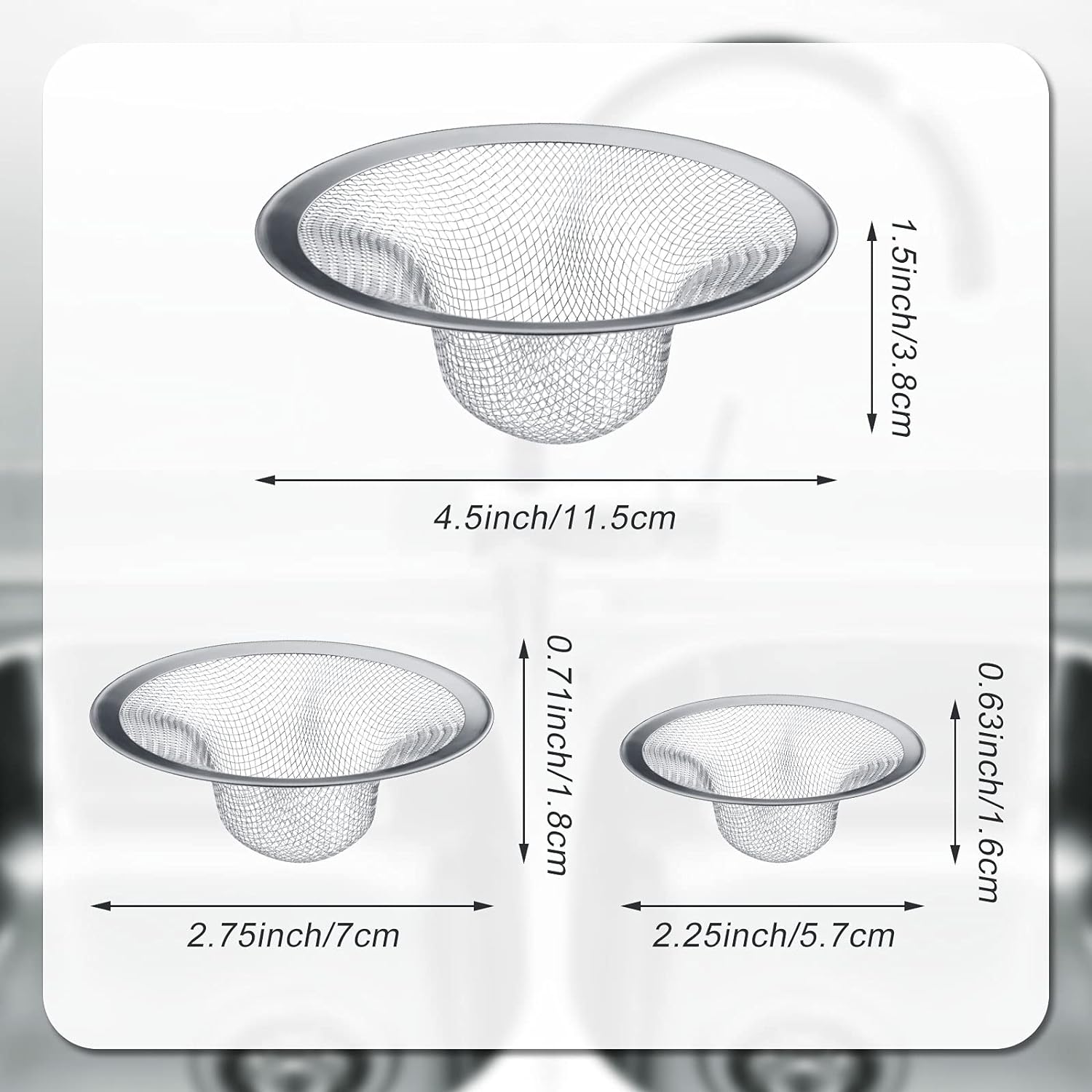Ideal For: Use each mesh drain strainer for different home sinks; perfect for a kitchen, and as a hair catcher in bathtubs and bathrooms; you can also use them in restaurant kitchens and utility sinks