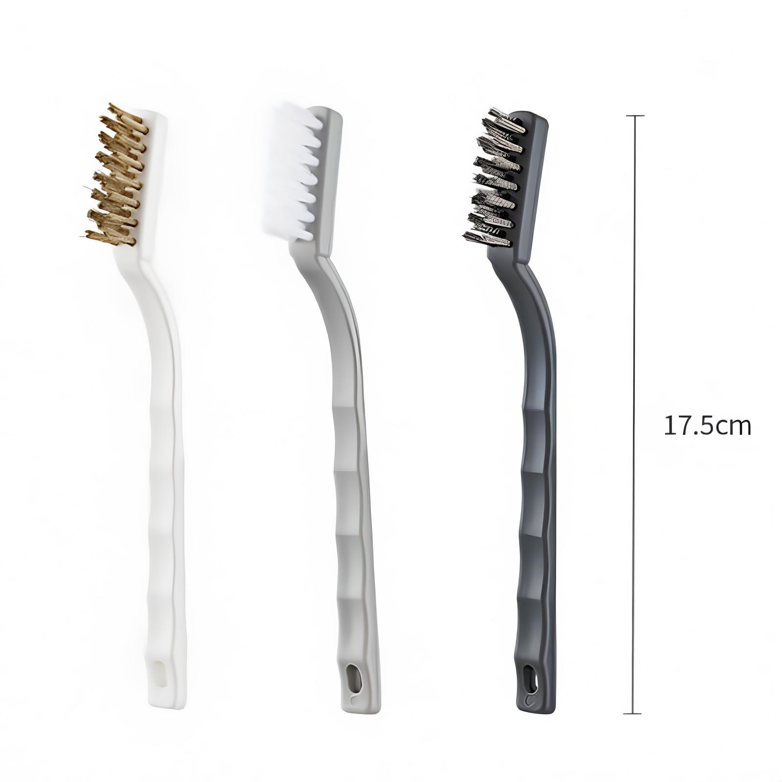 Three different brush heads: brass wire brush head has strong decontamination and durability, which is suitable for cleaning solid dirt; stainless steel wire brush head is fine and tough, which is suitable for cleaning oil stains; nylon wire brush head has soft bristles, which do not damage the object surface, and is suitable for cleaning dust
