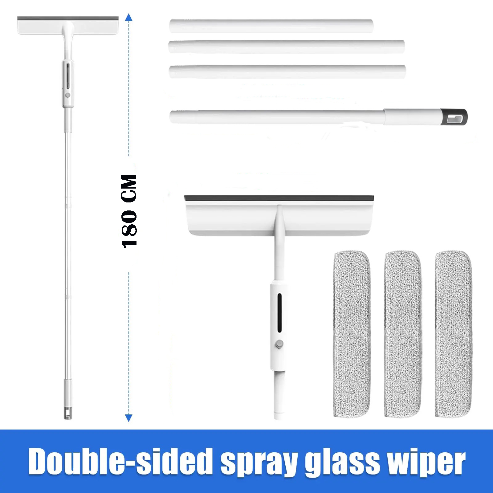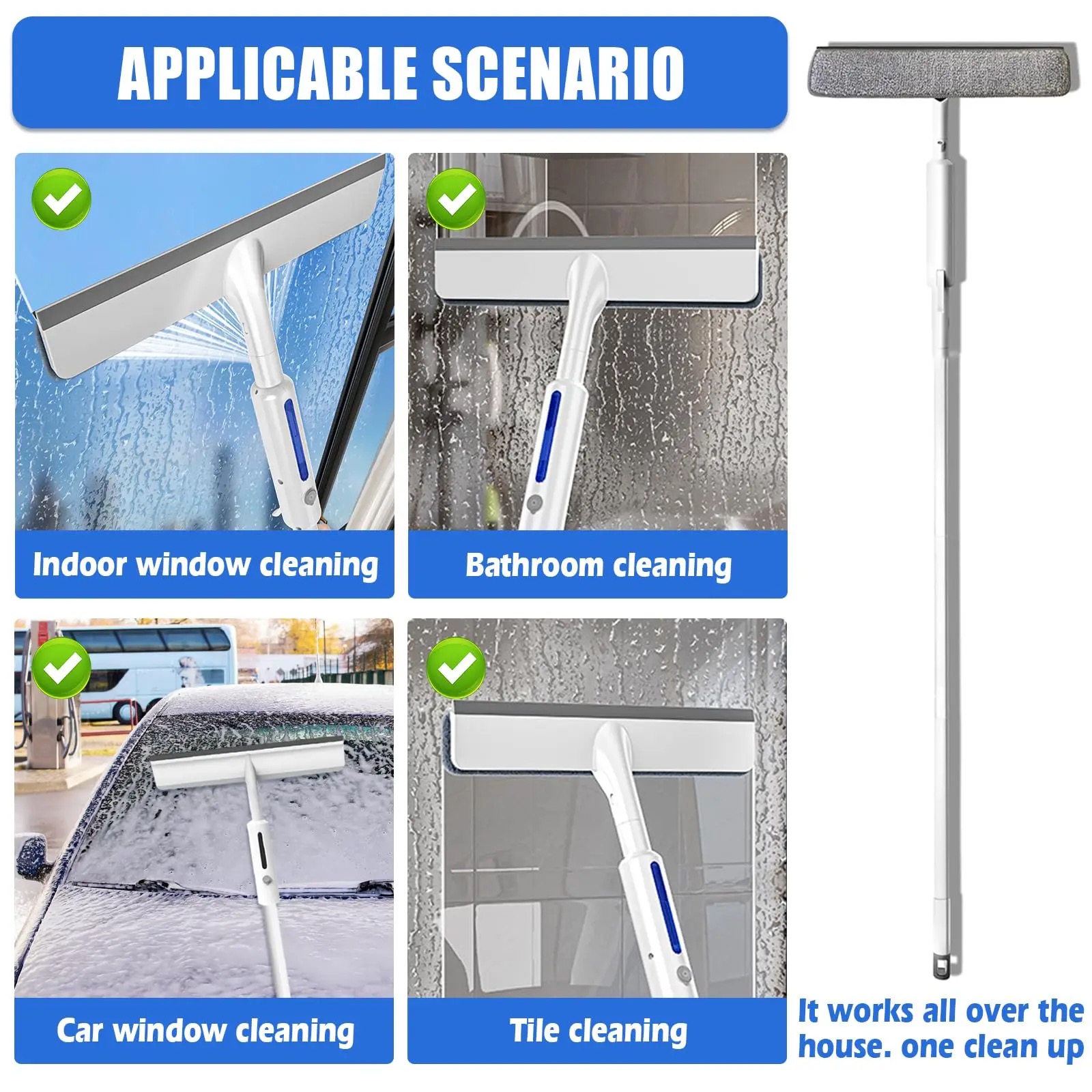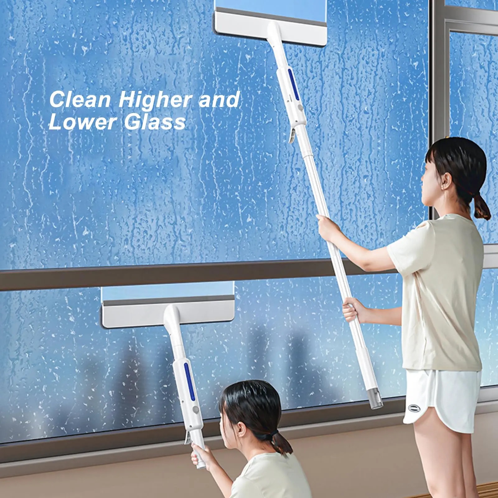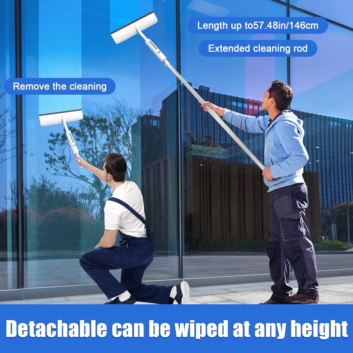 Extension Pole: Telescopic pole extends up to 180cm for easy cleaning of high or hard-to-reach windows without a ladder; detachable brush head for easy maintenance.