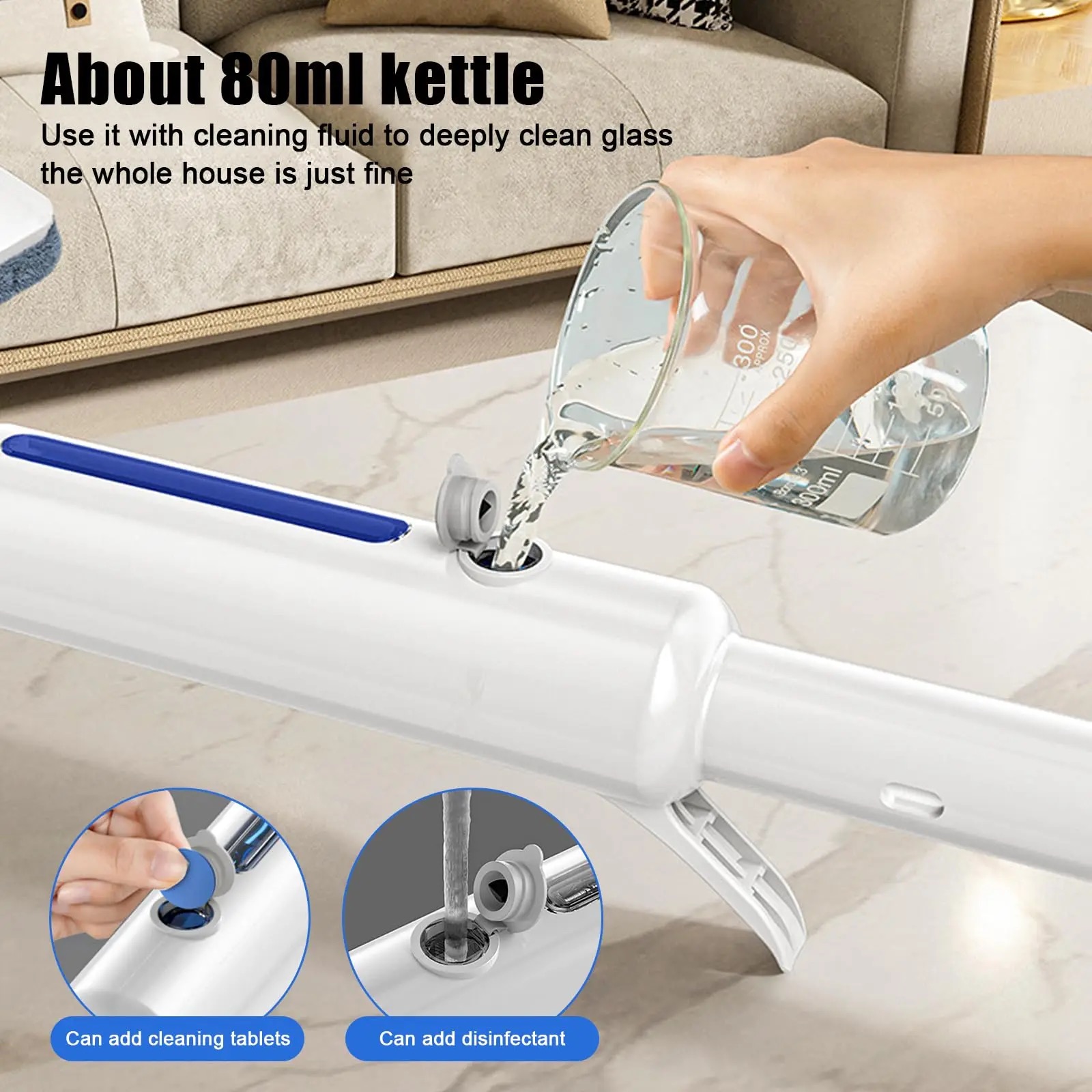 Space-Saving Design: Removable parts for easy storage and long-lasting, efficient use with replaceable mop cloths.