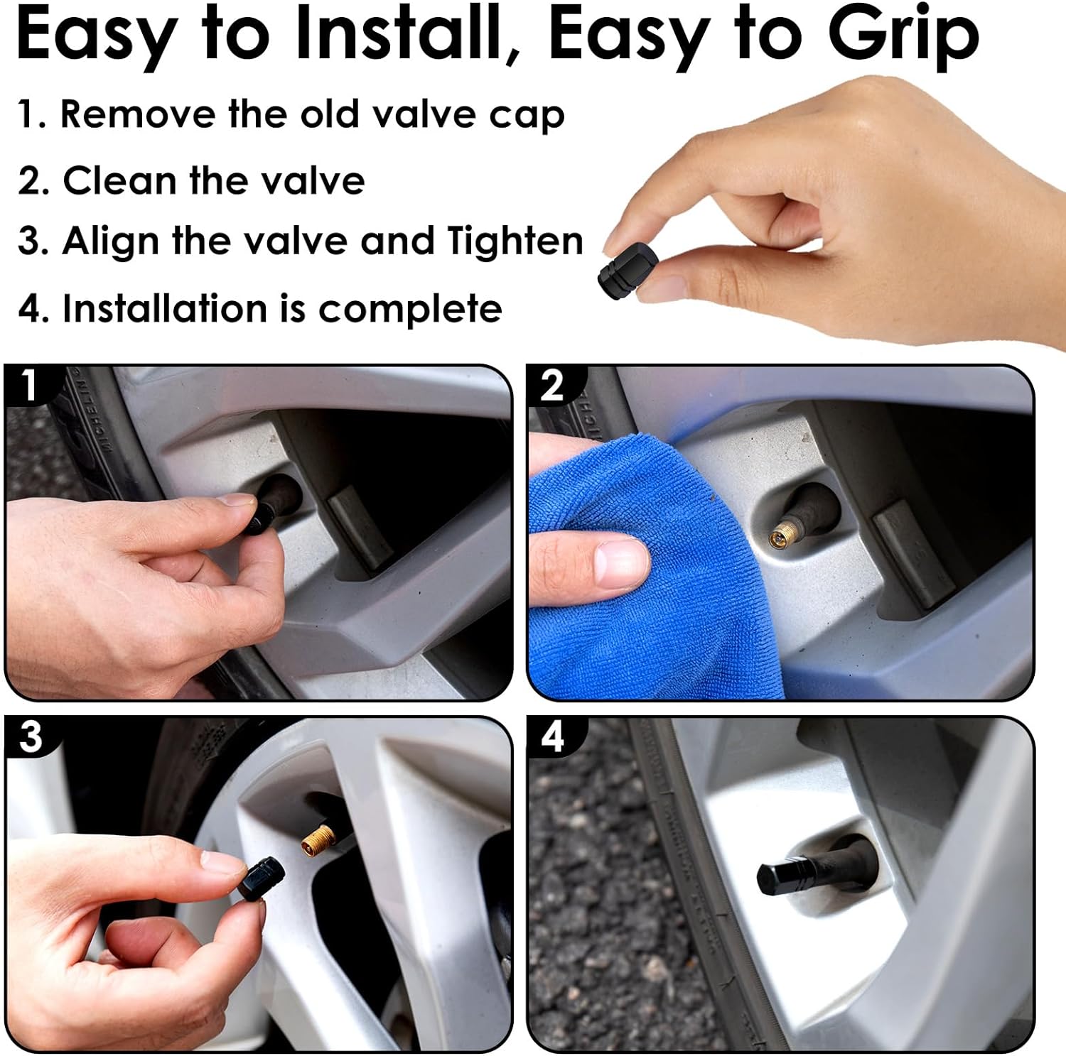 Easy to Install: Package includes 4 tire valve caps, can be easily tightened by using hand, simple and convenient.