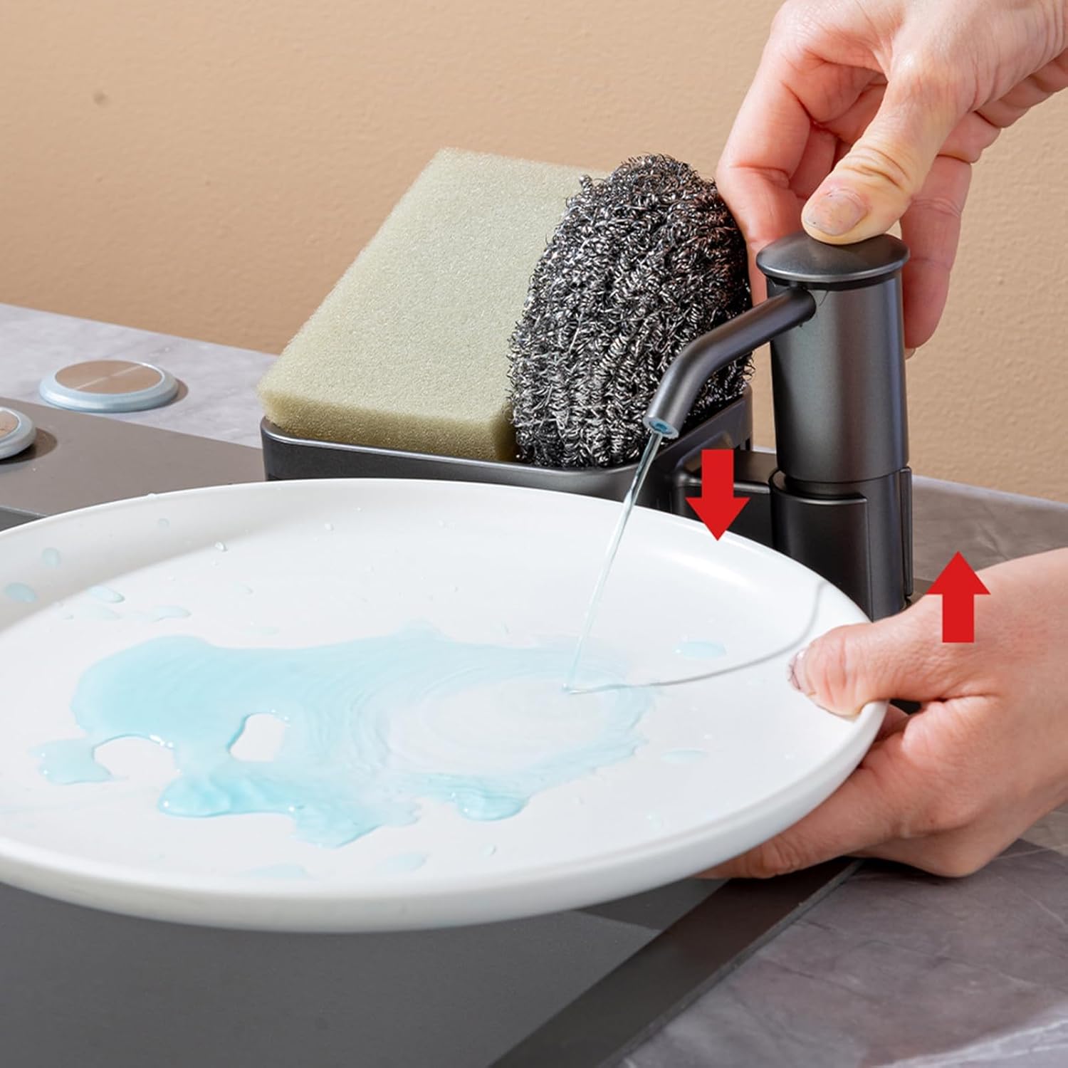 [Practical Shelf Extension]: Our soap dispenser with extended hose comes with a built-in shelf, giving you extra storage space for small items in your kitchen. Say goodbye to cluttered countertops and keep your kitchen organized effortlessly.