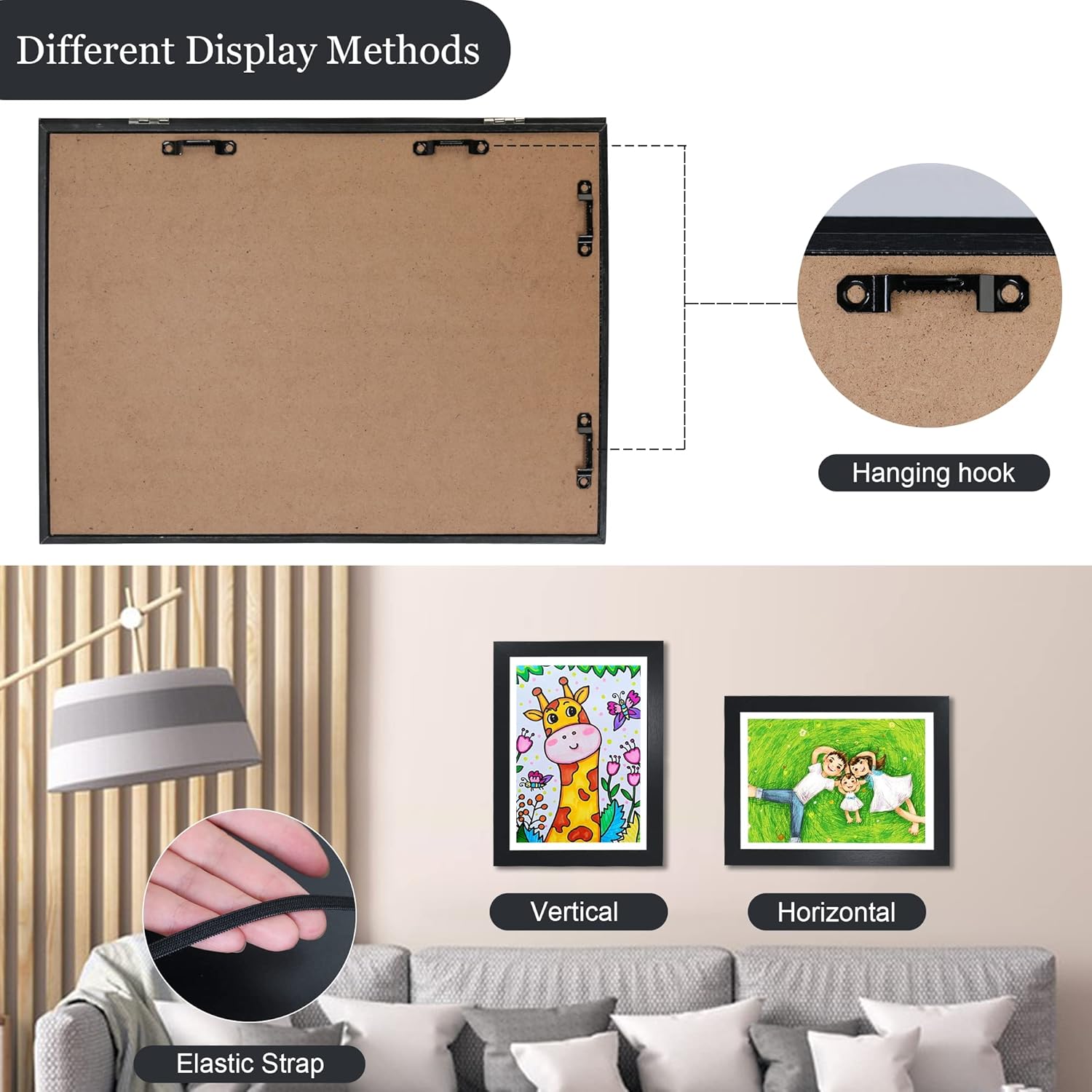 Large Capacity Design: Children's art works display provides a perfect display size for A4 drawings, because it is equipped with a large capacity design, which can store about 50 to 150 art works.