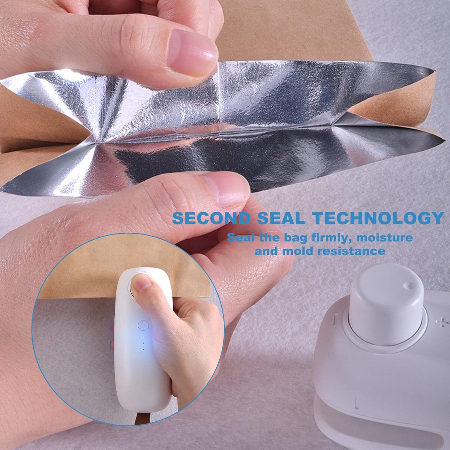 【2-in-1 heat sealing device and cutter】High-quality ABS material, this bag sealer can not only be used for sealing plastic bags, chip bags, rice bags, the built-in cutter can also be used to open the bag.