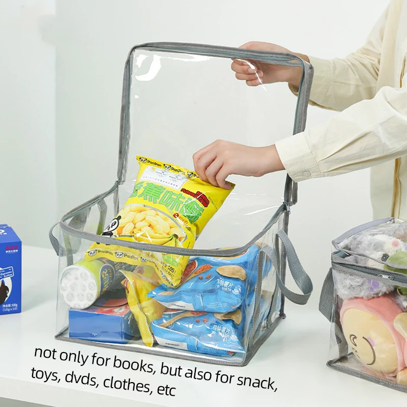 The storage bag can hold many things such as books, puzzles, crafts, manuals, posters, charts, etc.
